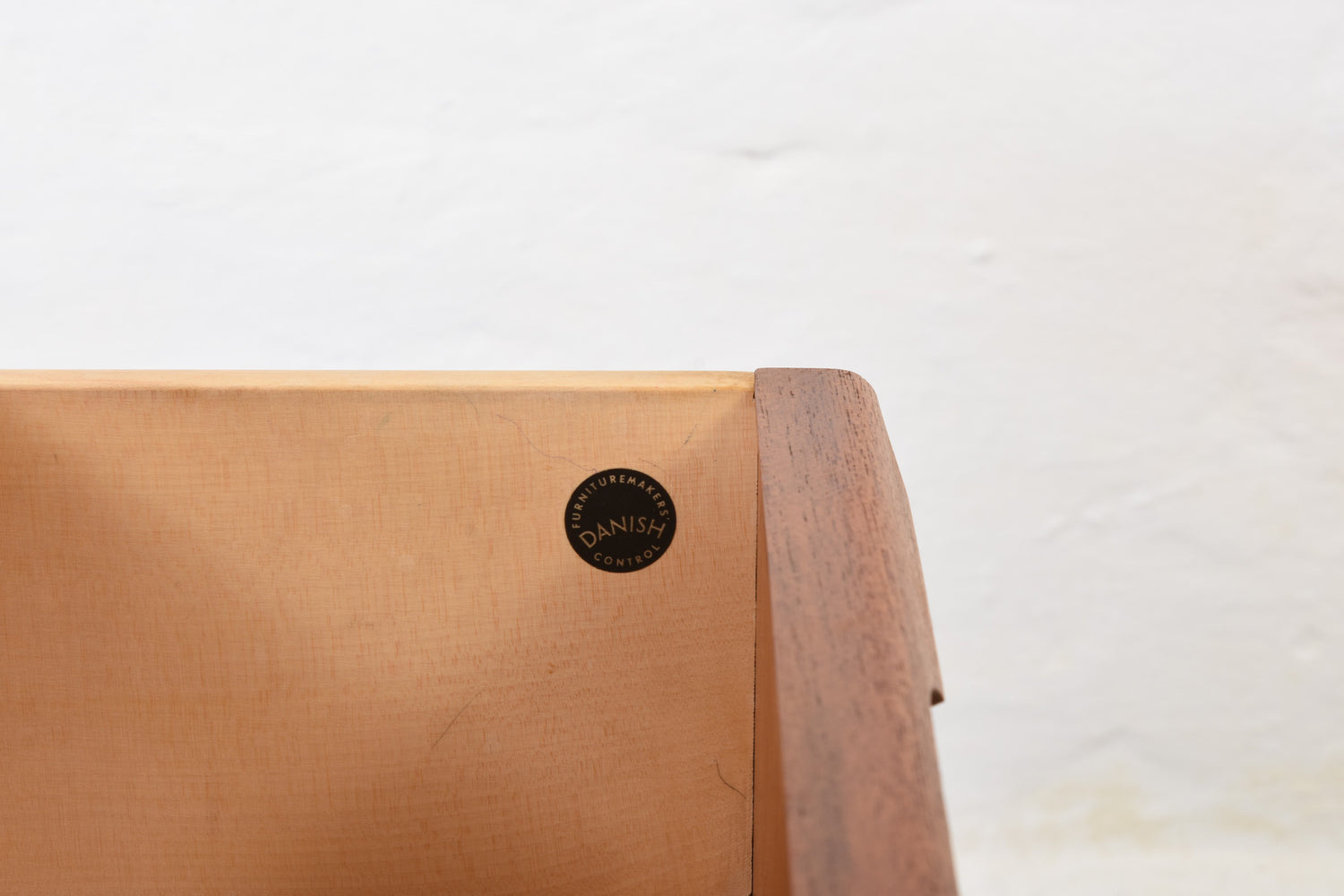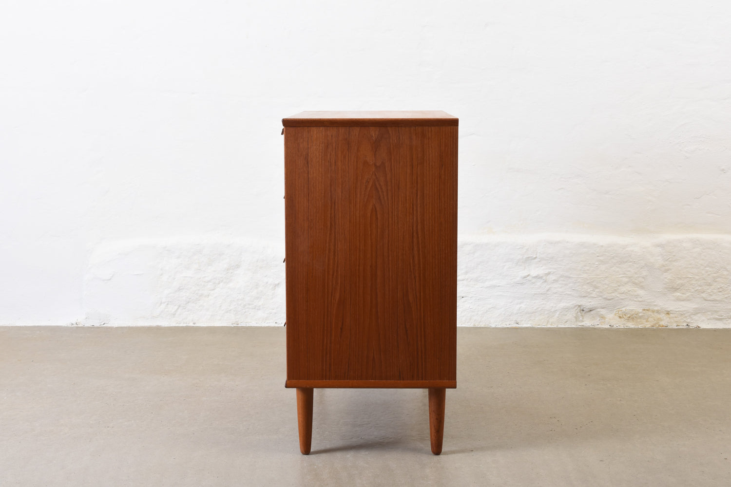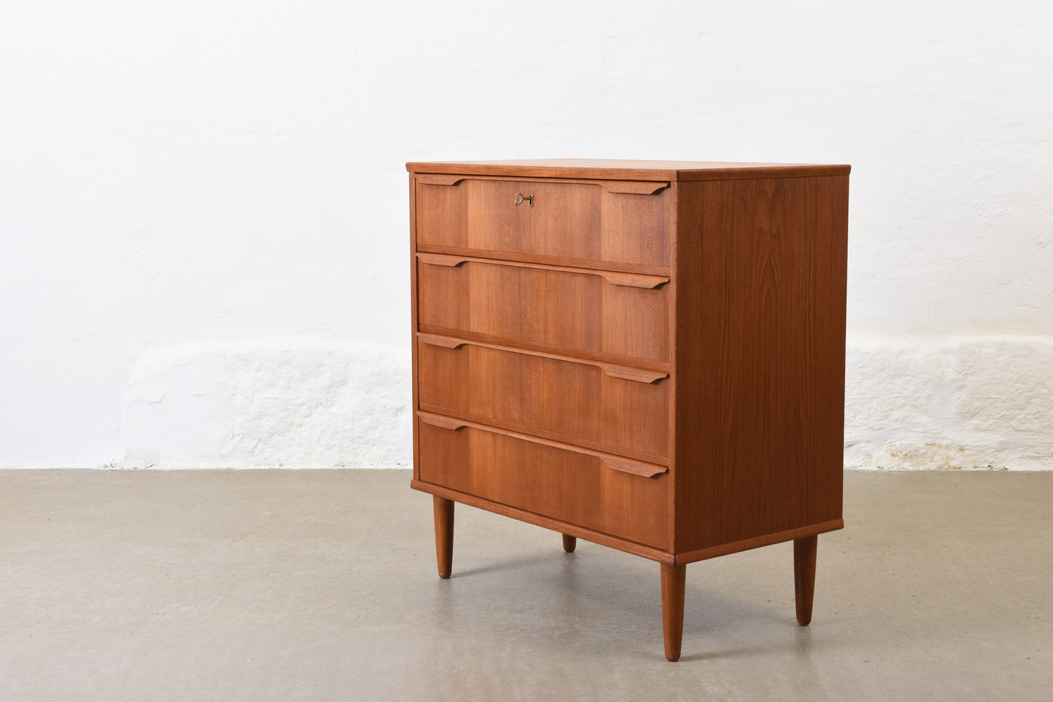 Beautifully crafted chest in teak with four birch-lined drawers and sculpted handles.