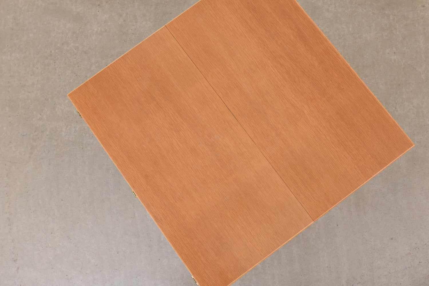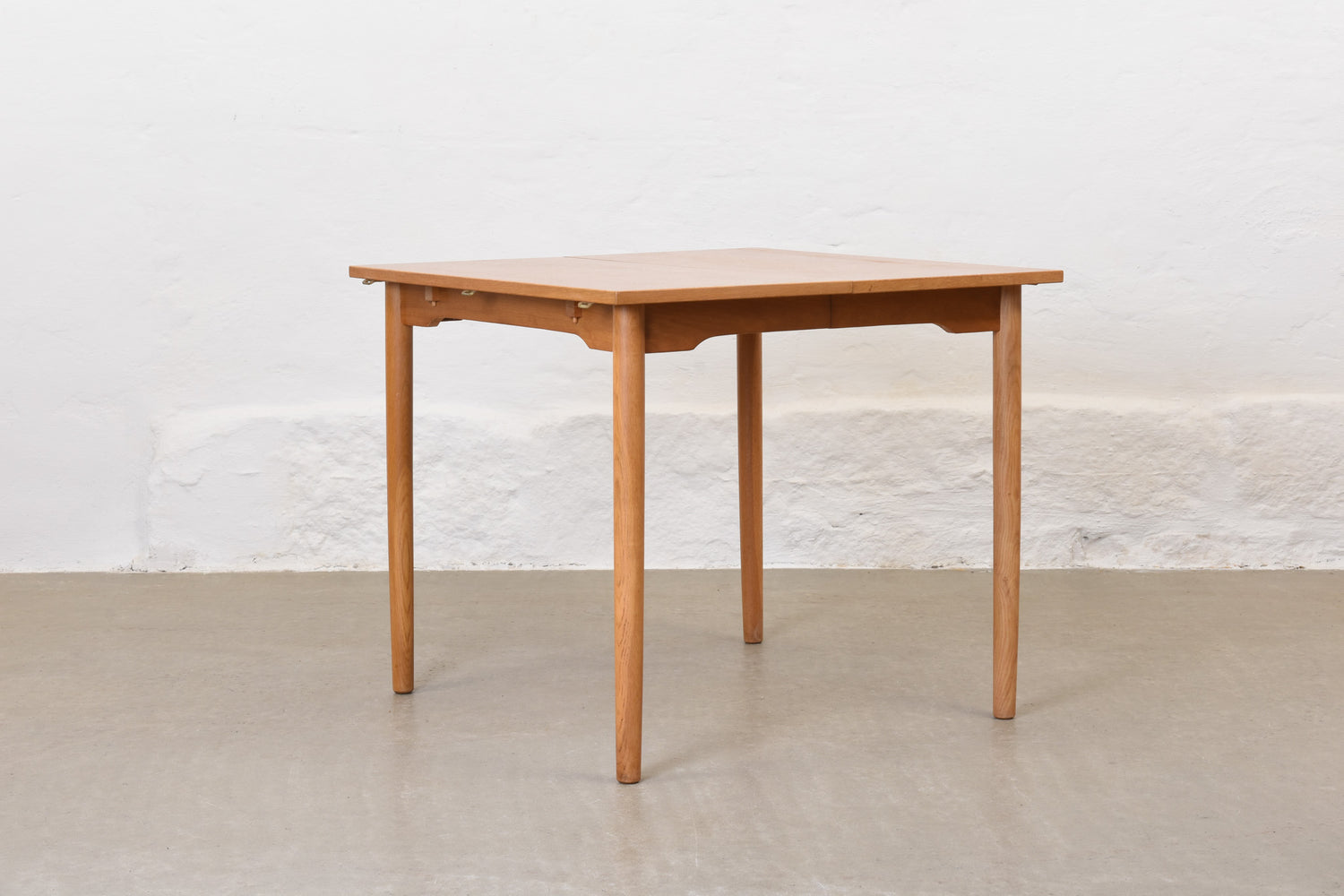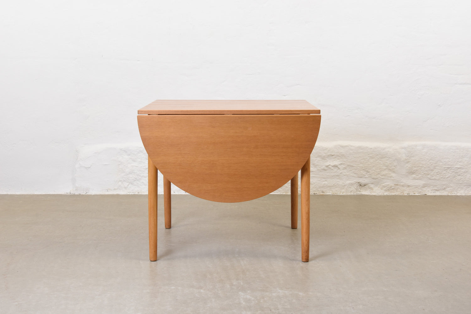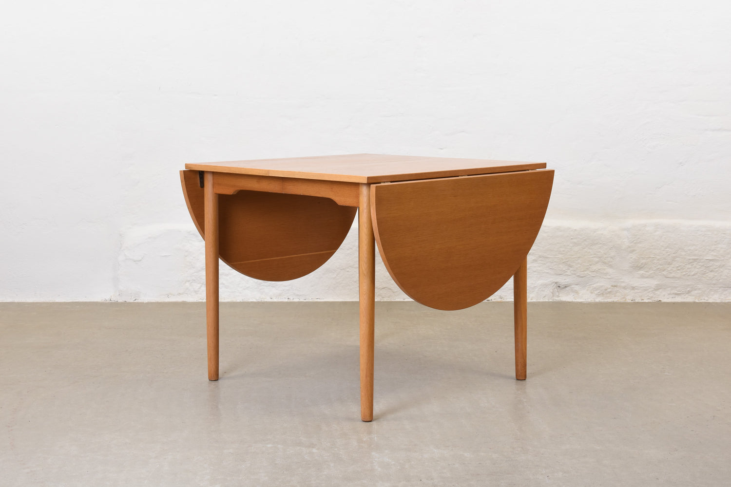 Extending dining table in oak with two removable drop-leaves and a further two drop-in extensions. When fully extended will sit up to eight comfortably.