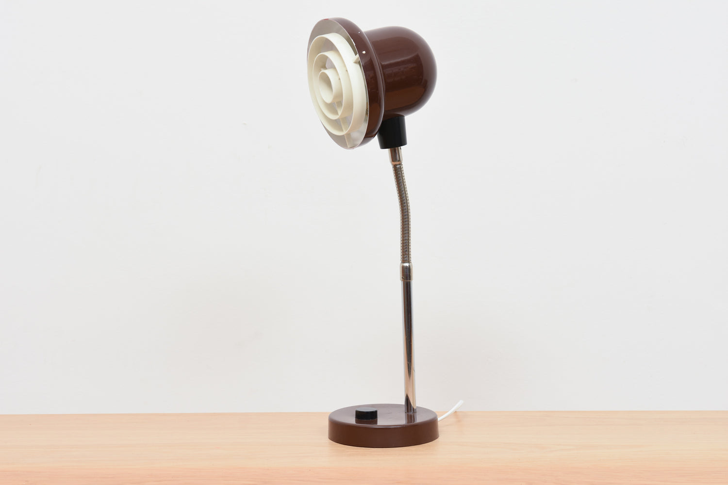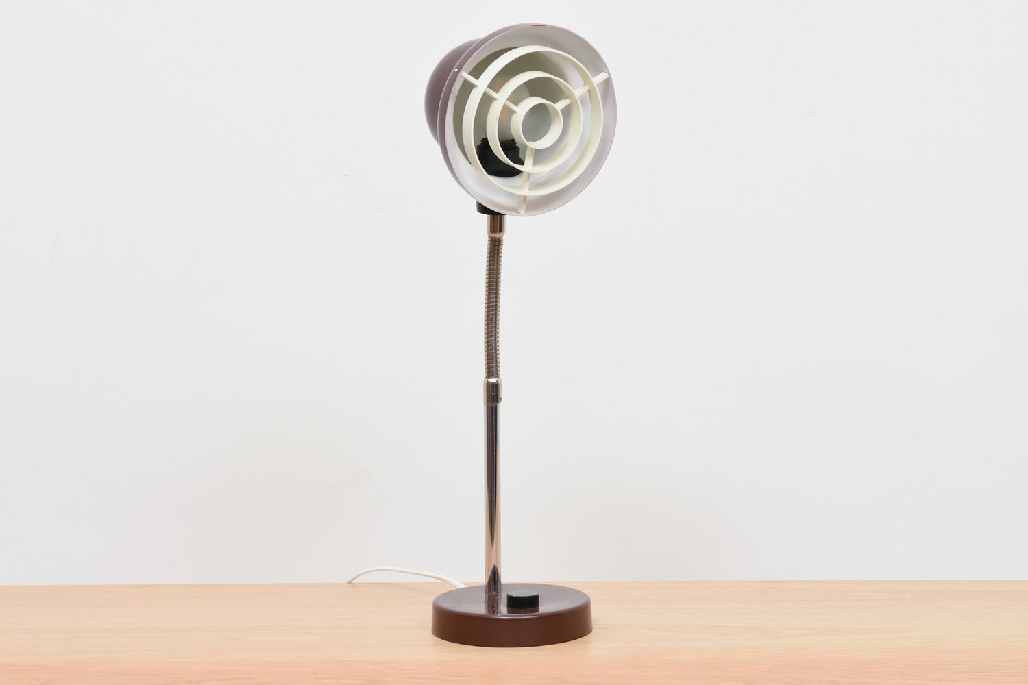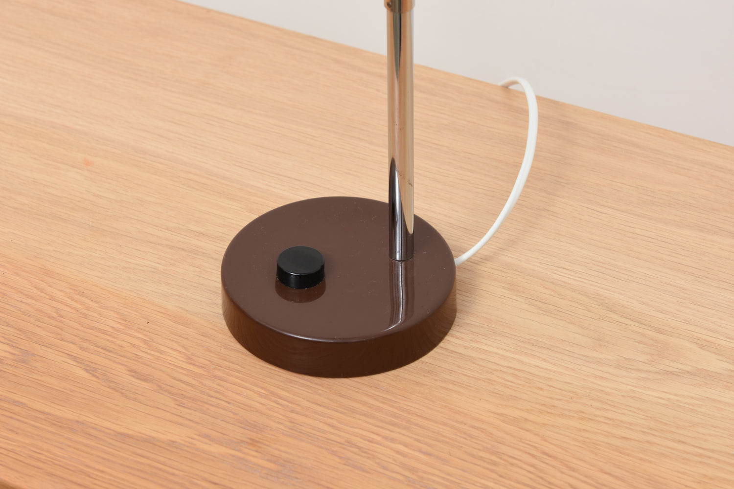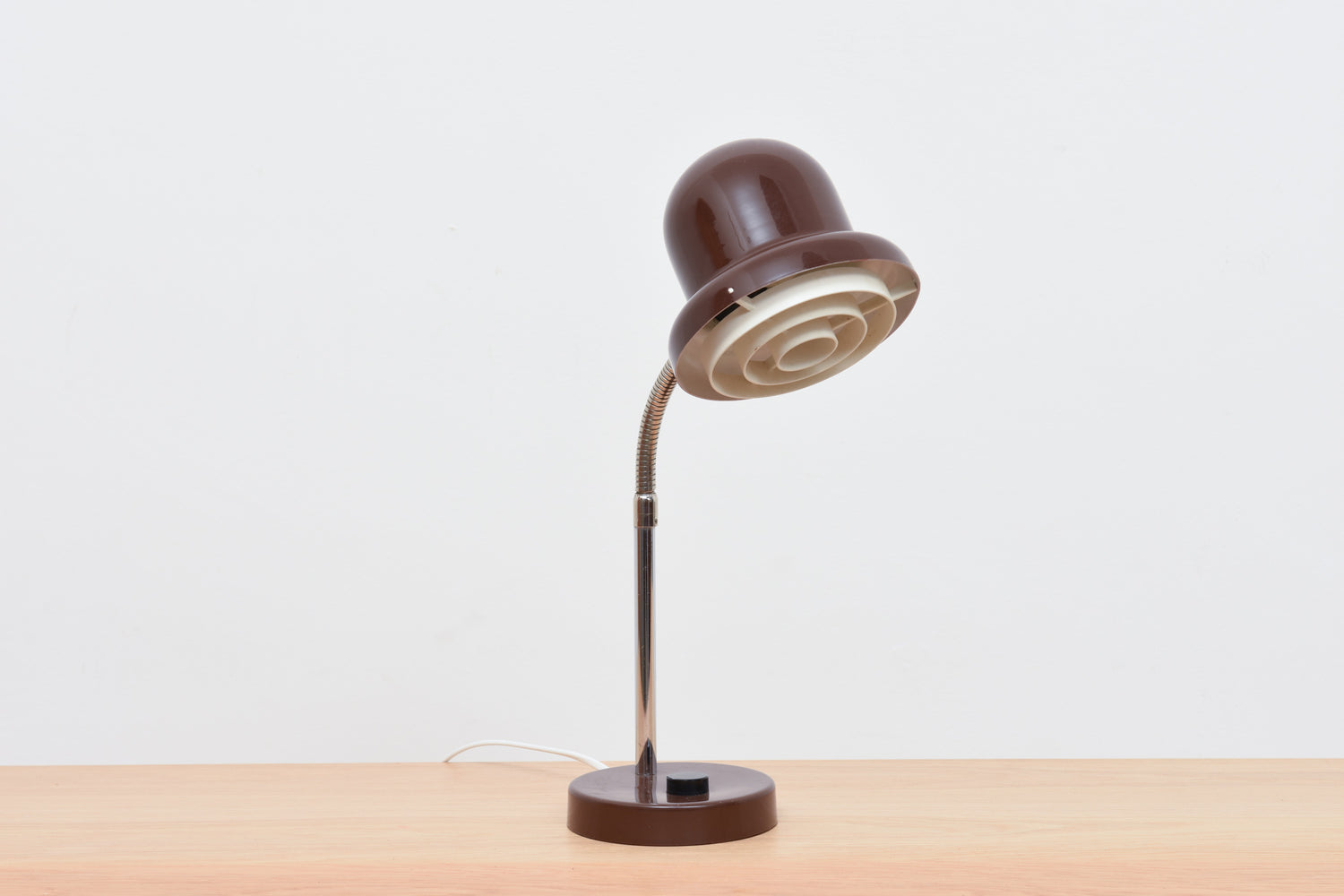 Vintage metal table lamp with a brown lacquer finish, adjustable neck and its original white acrylic diffuser.