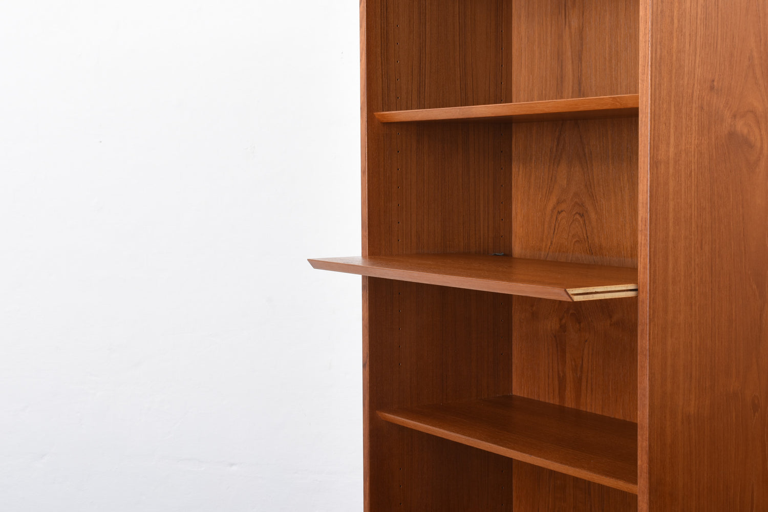 Tall bookshelf in teak with five adjustable shelves. The middle shelf is fixed.