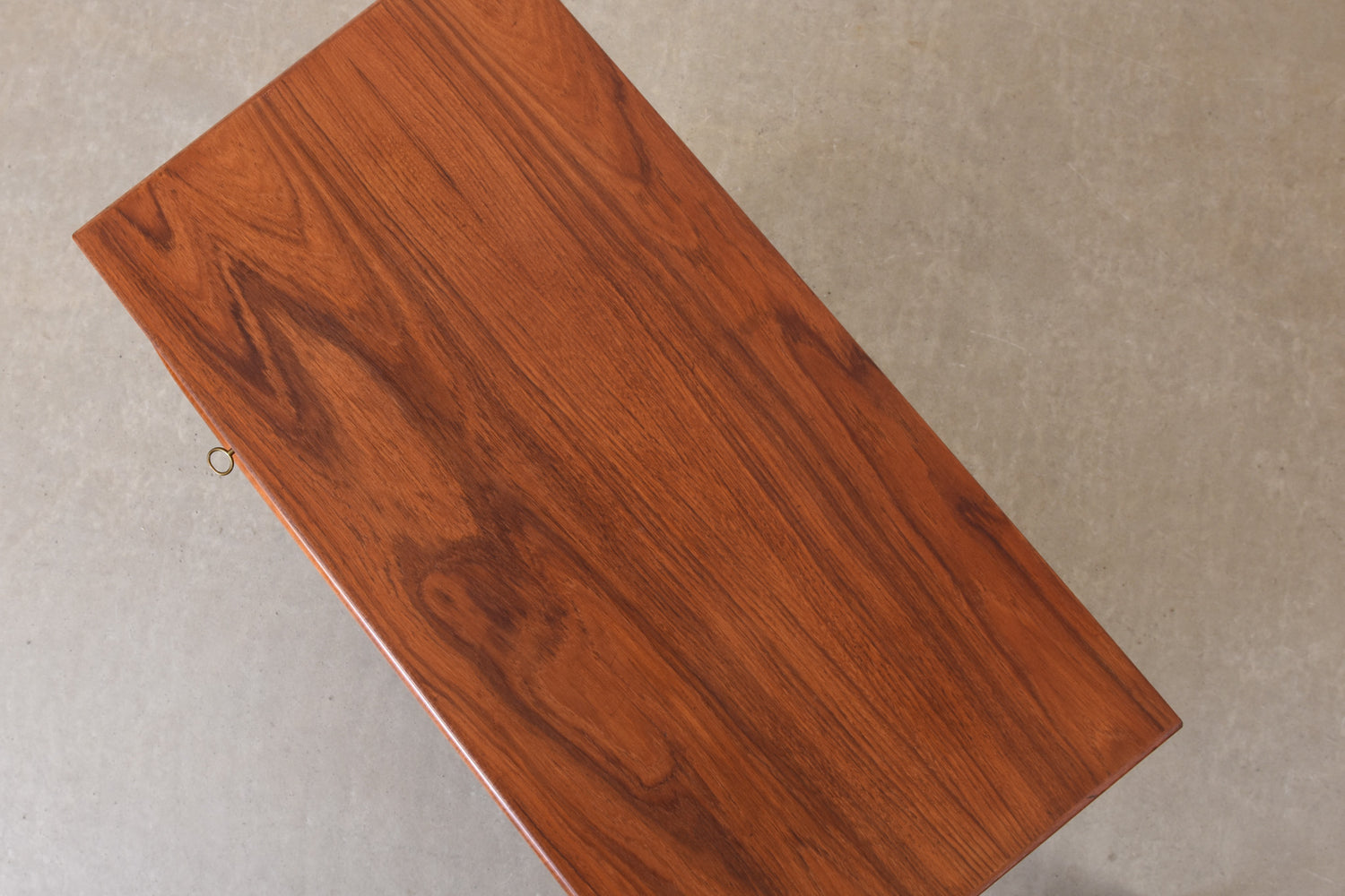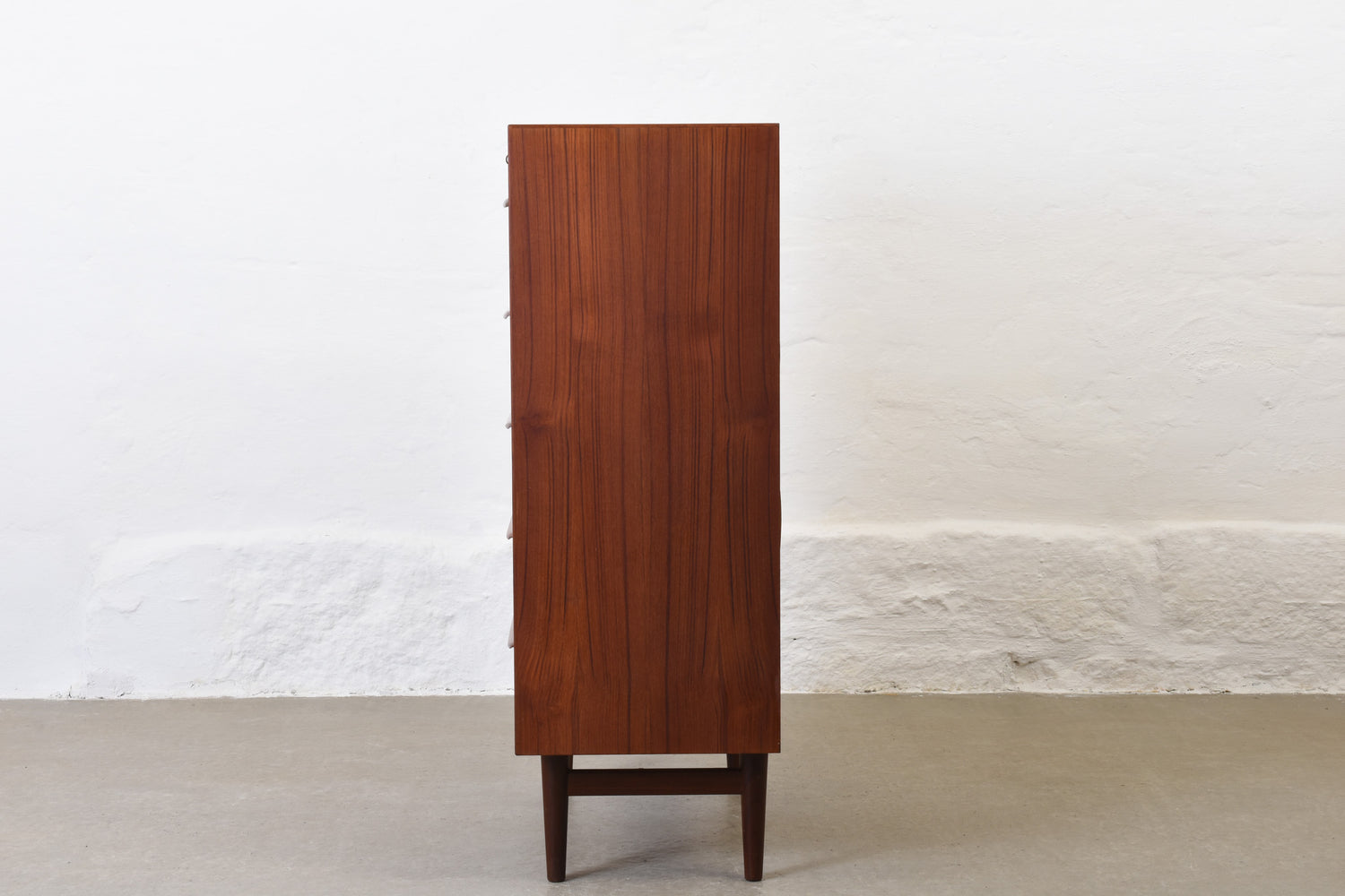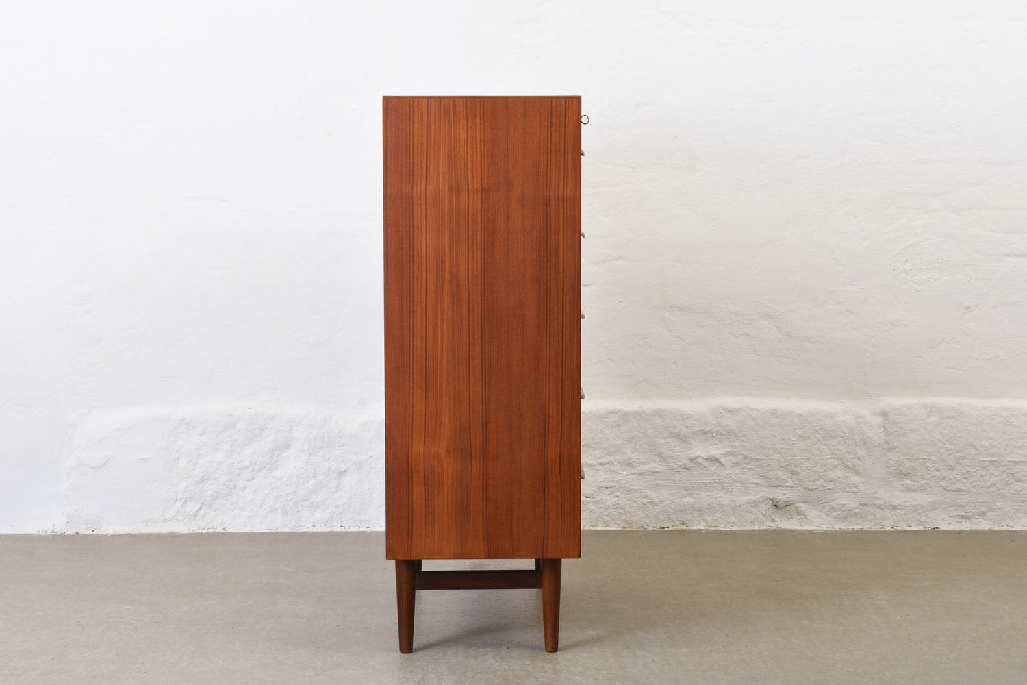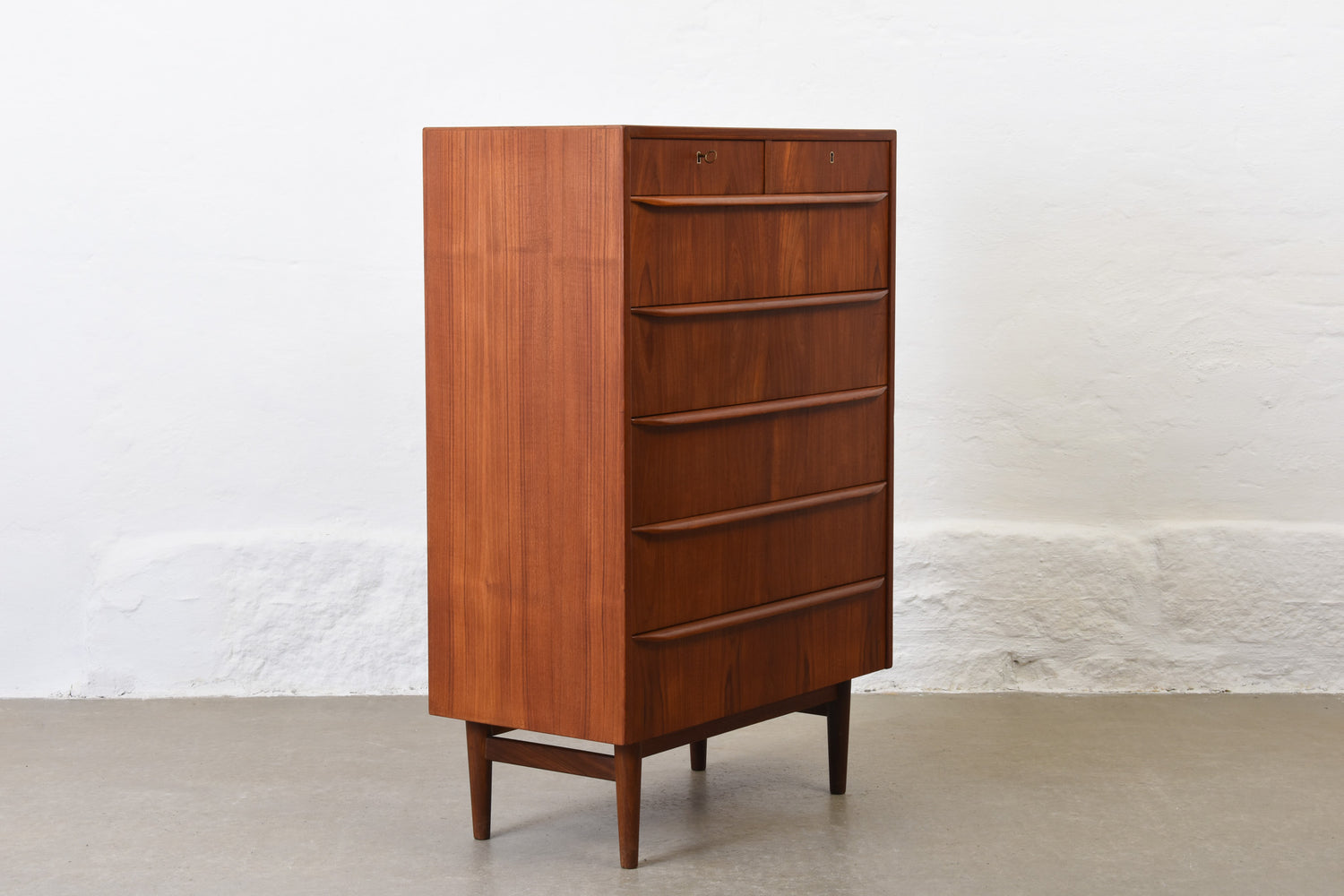 Superior quality, masterfully crafted Danish chest of seven drawers in teak with oak-lined drawers.