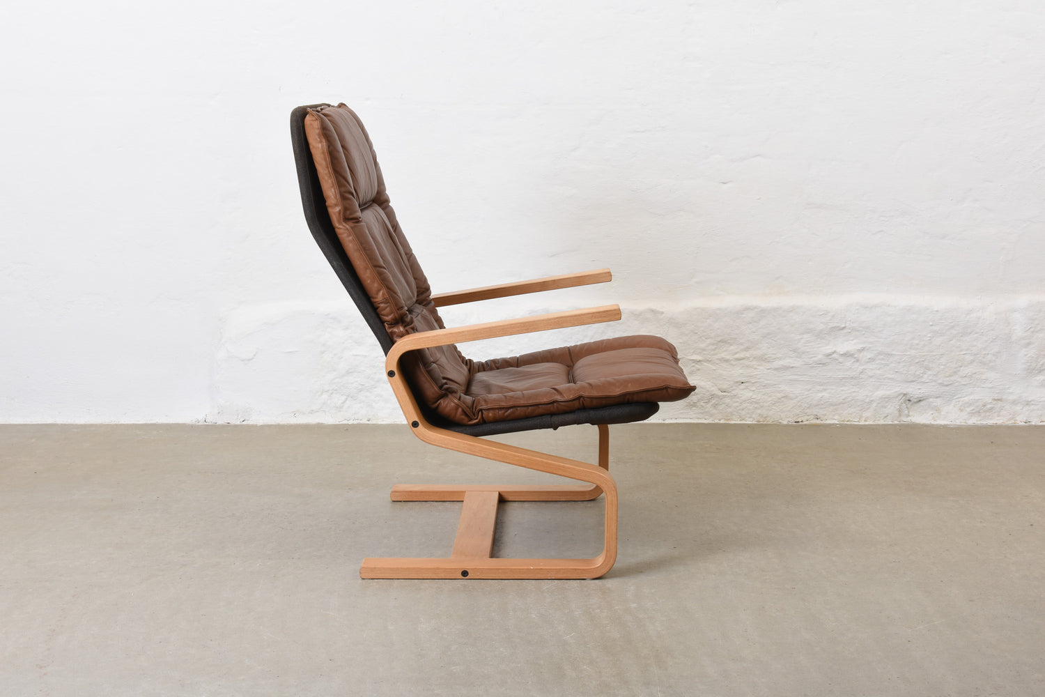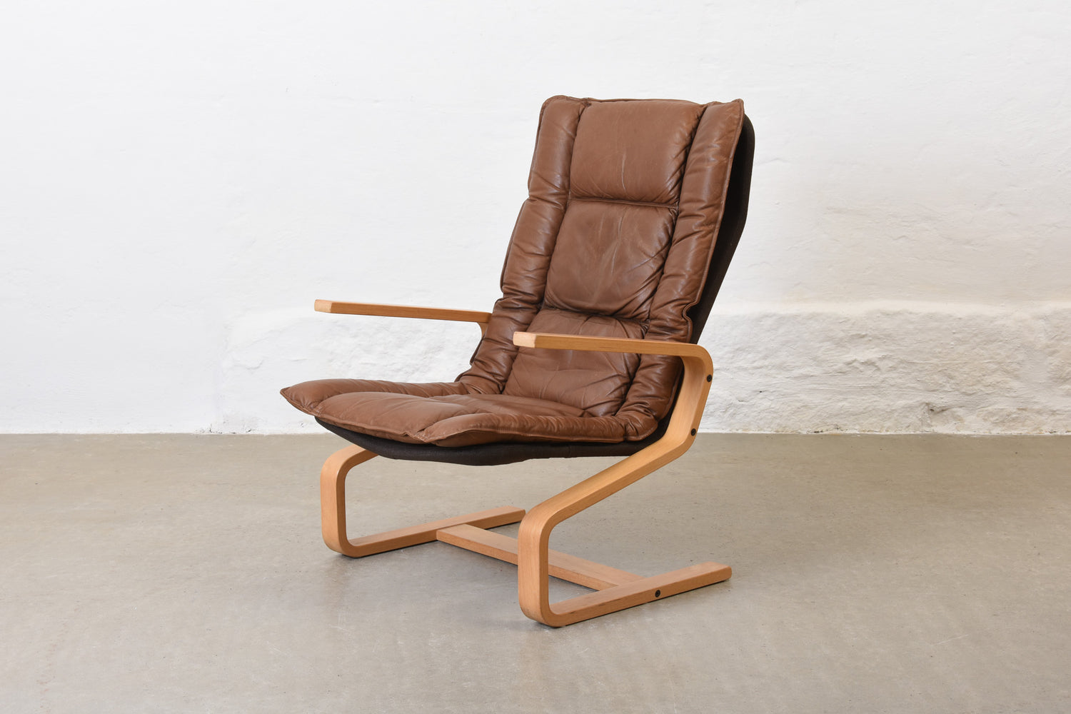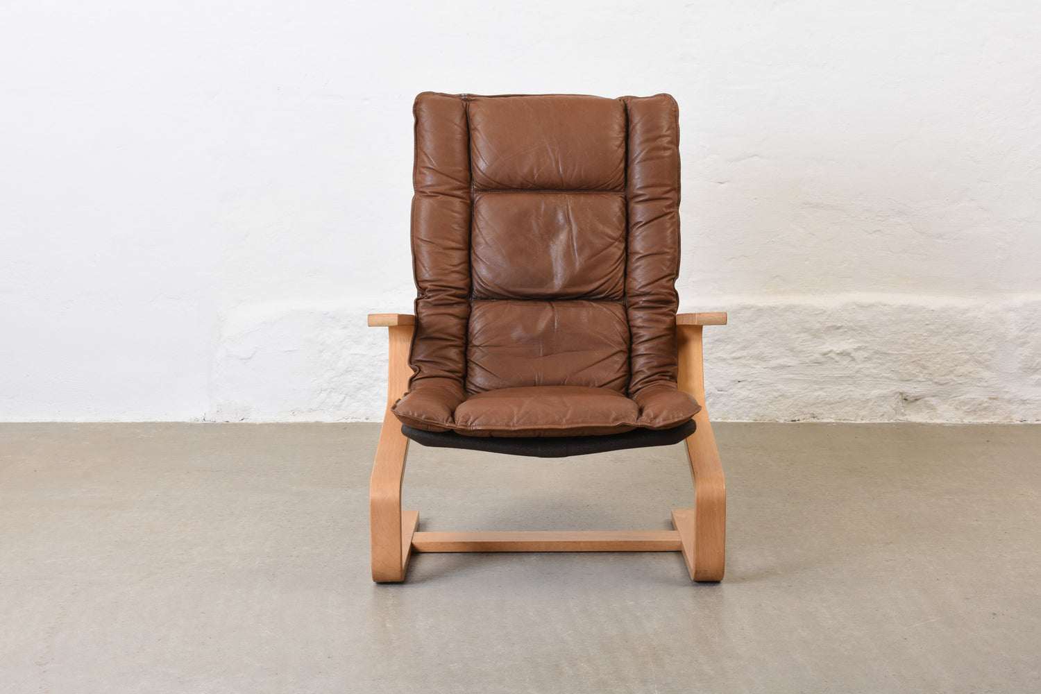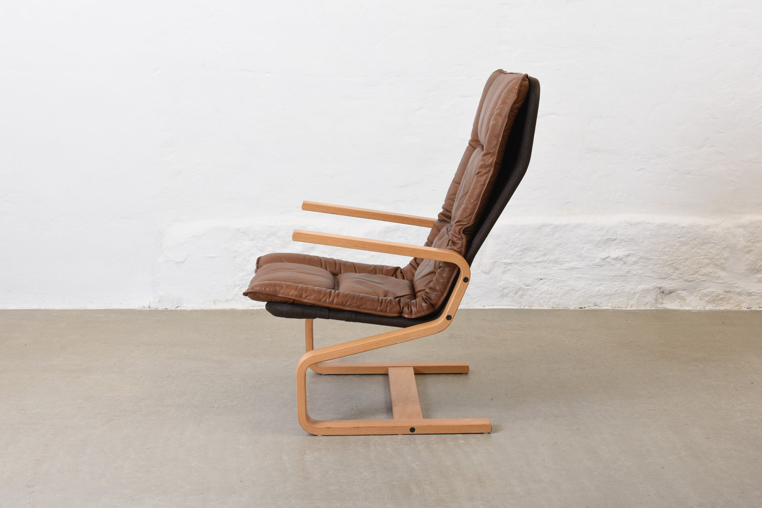 1970s leather + beech lounger by Olav Rolv Tysnes