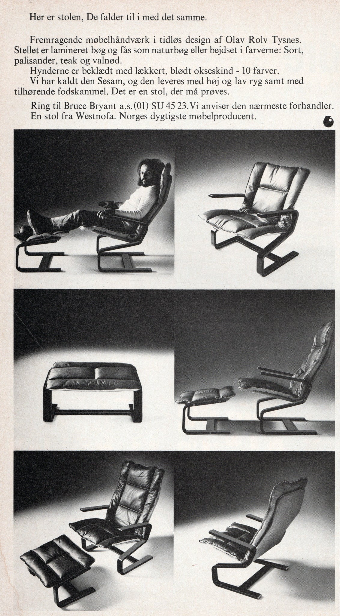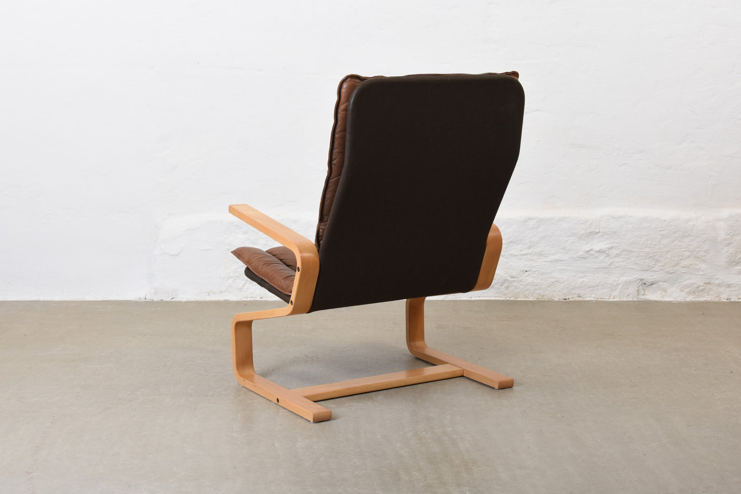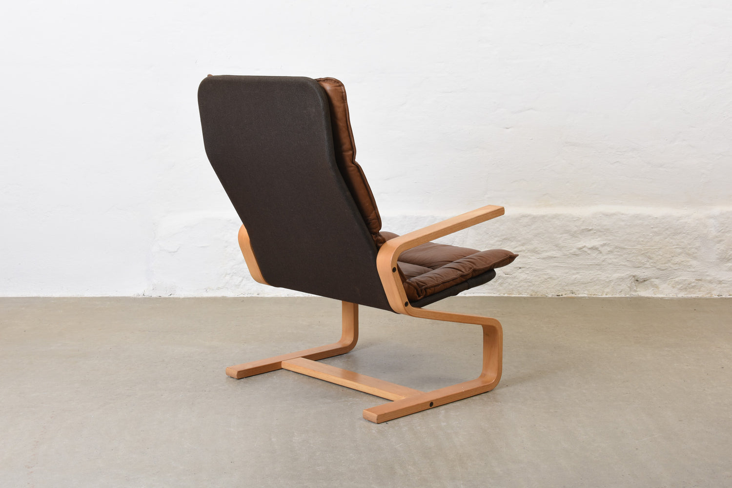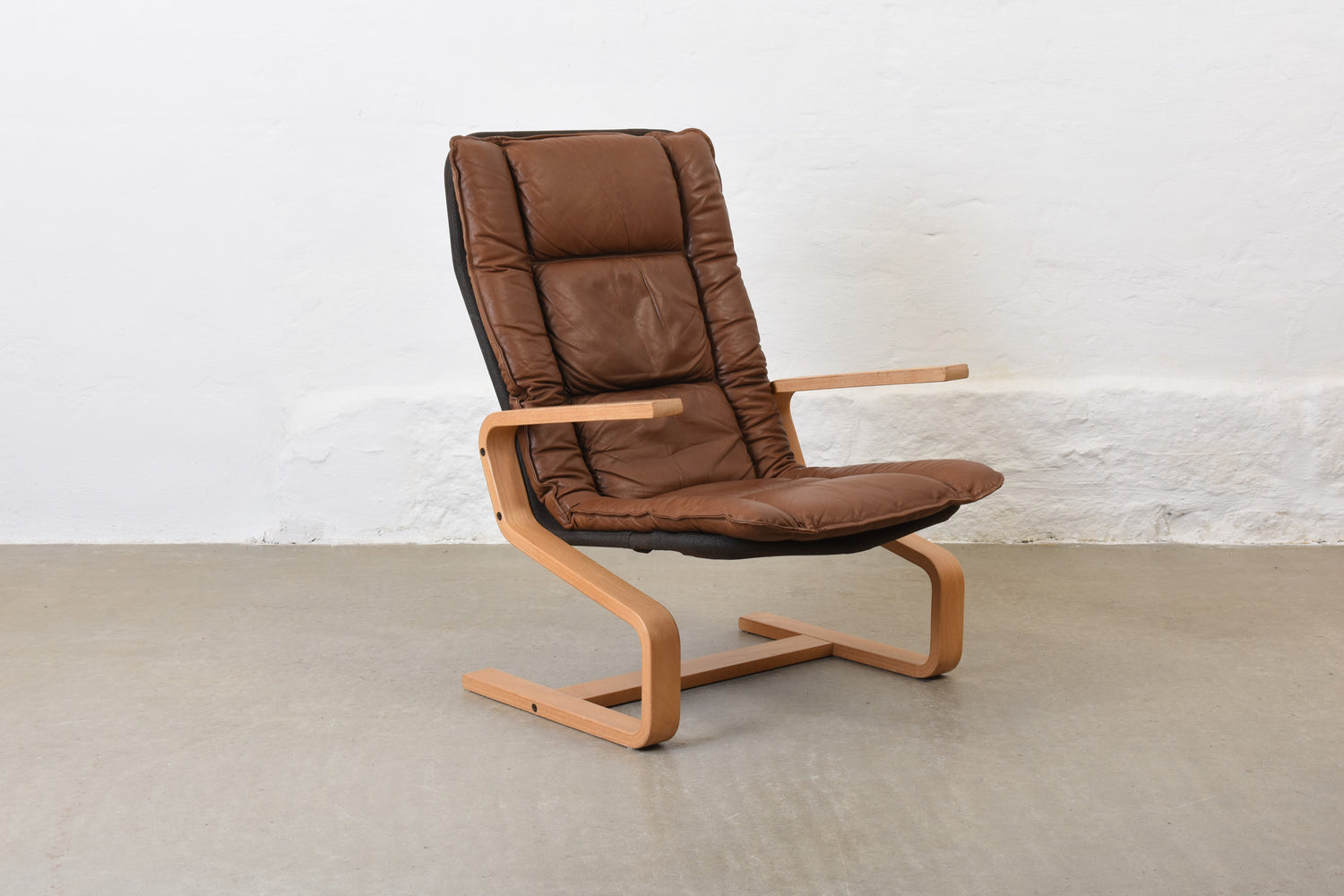 1970s leather + beech lounger by Olav Rolv Tysnes