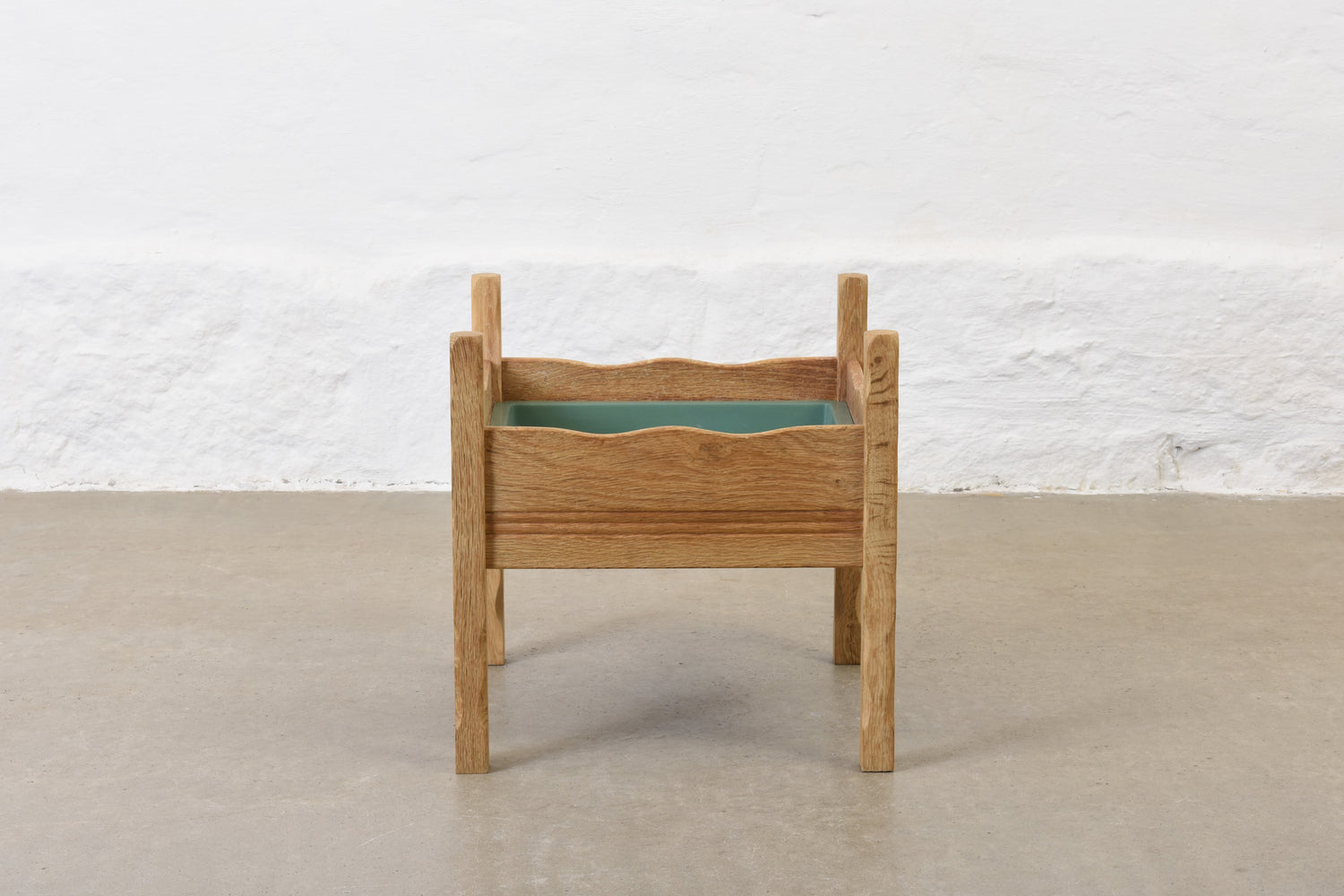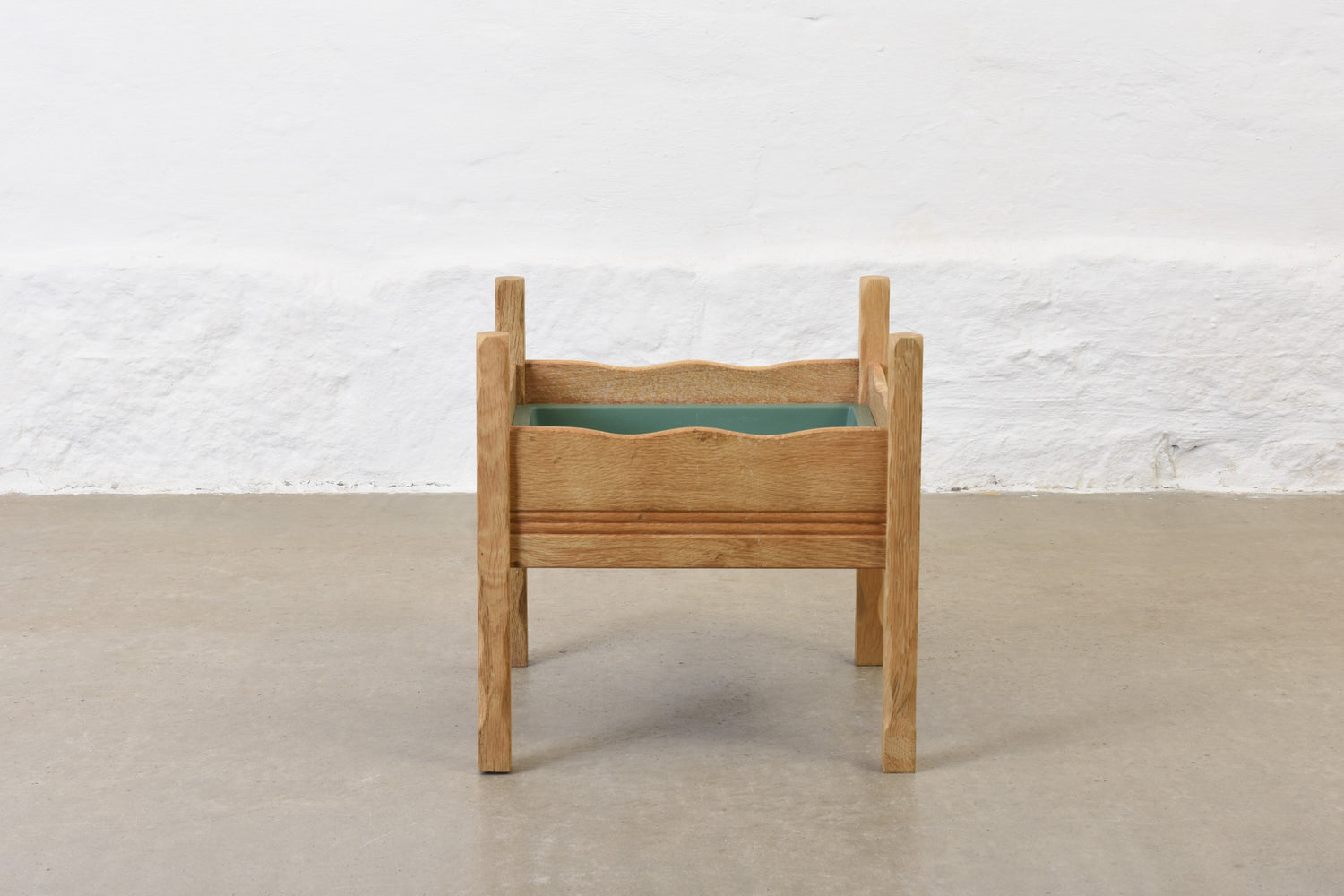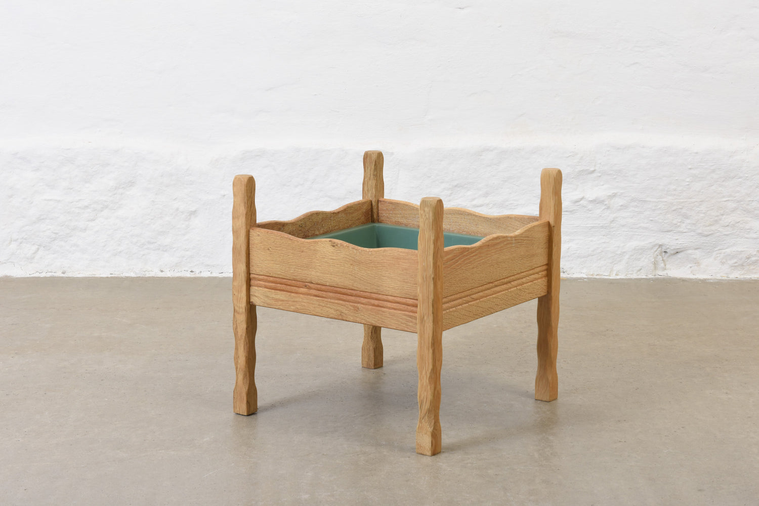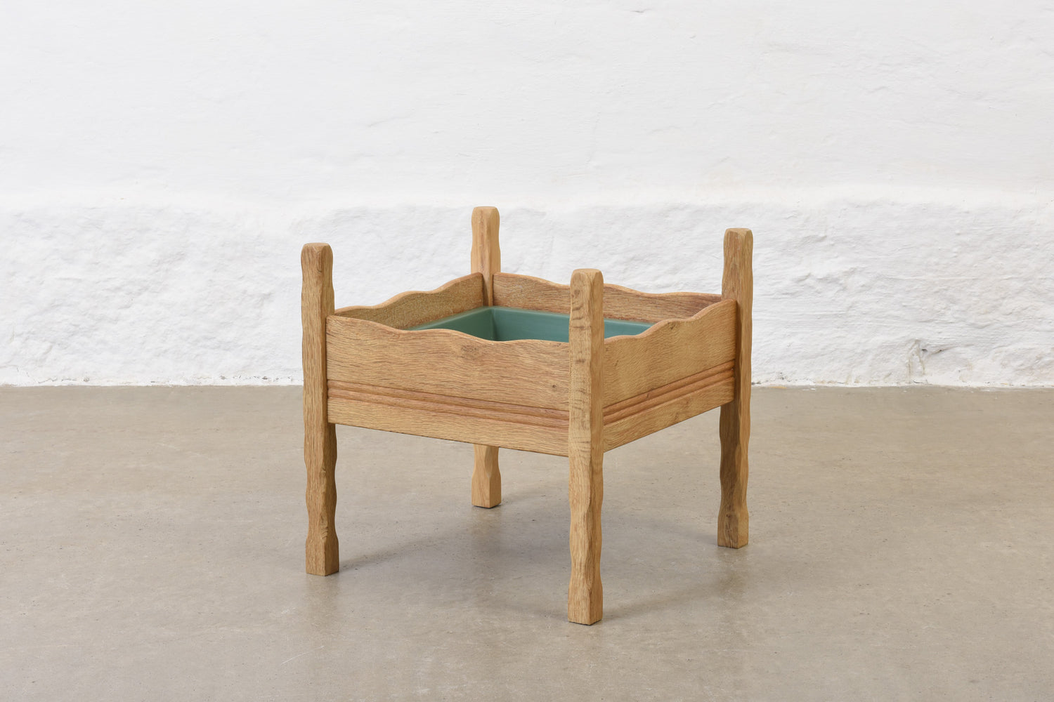 Planter in solid oak with its original plastic liner.