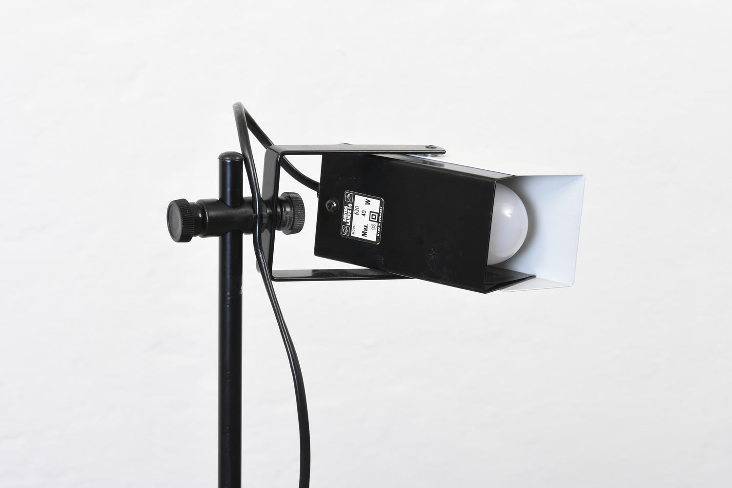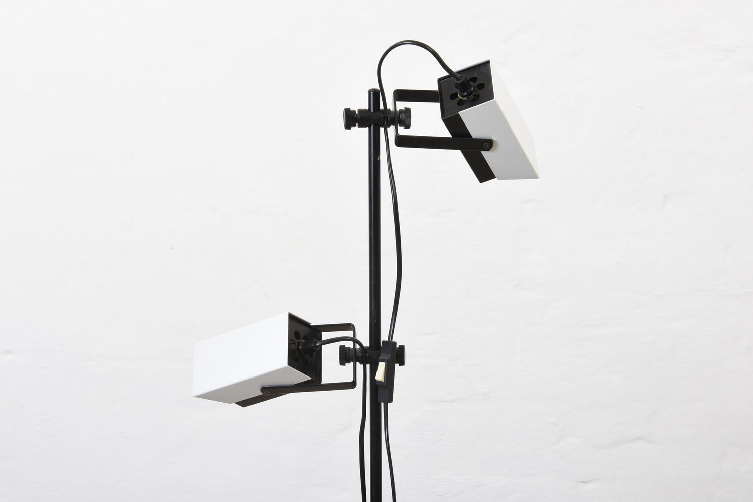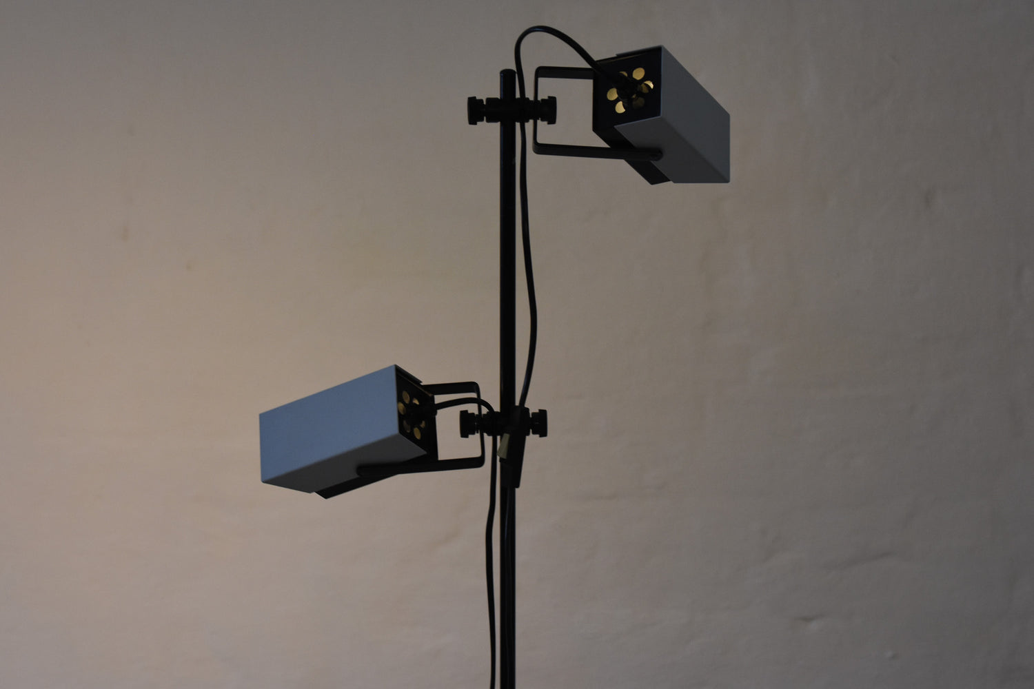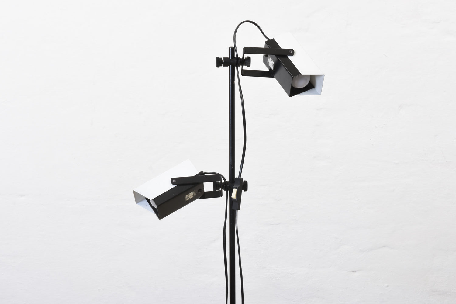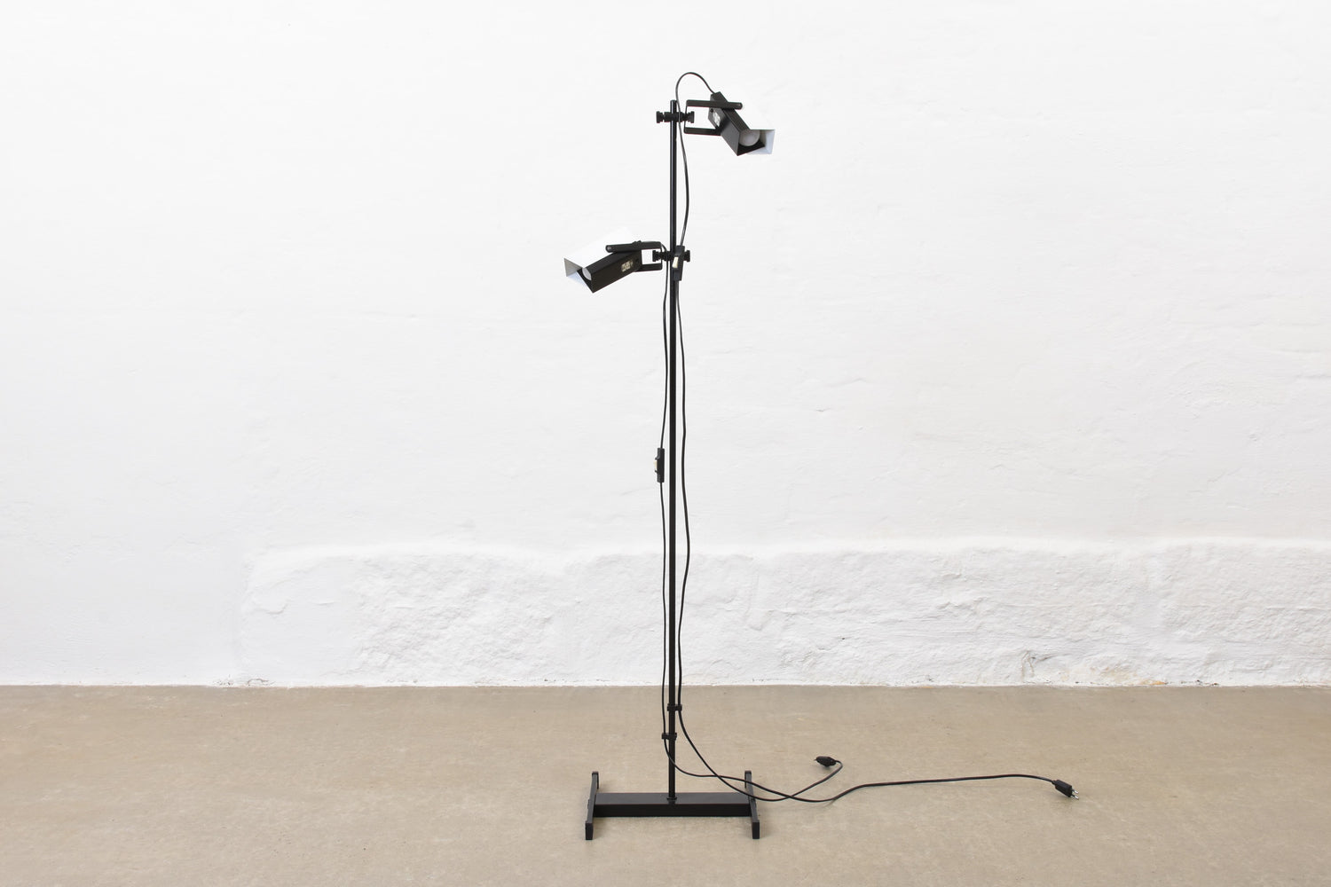 Vintage twin-headed floor lamp in lacquered metal with adjustable shades.
