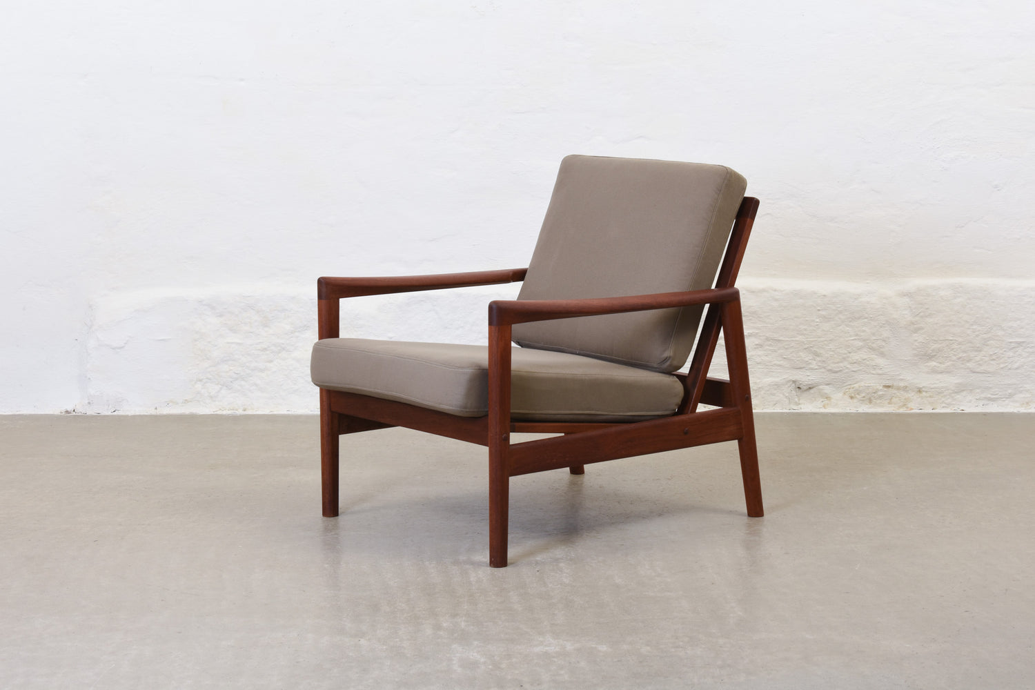 Newly reupholstered: 1960s teak lounger in brushed cotton
