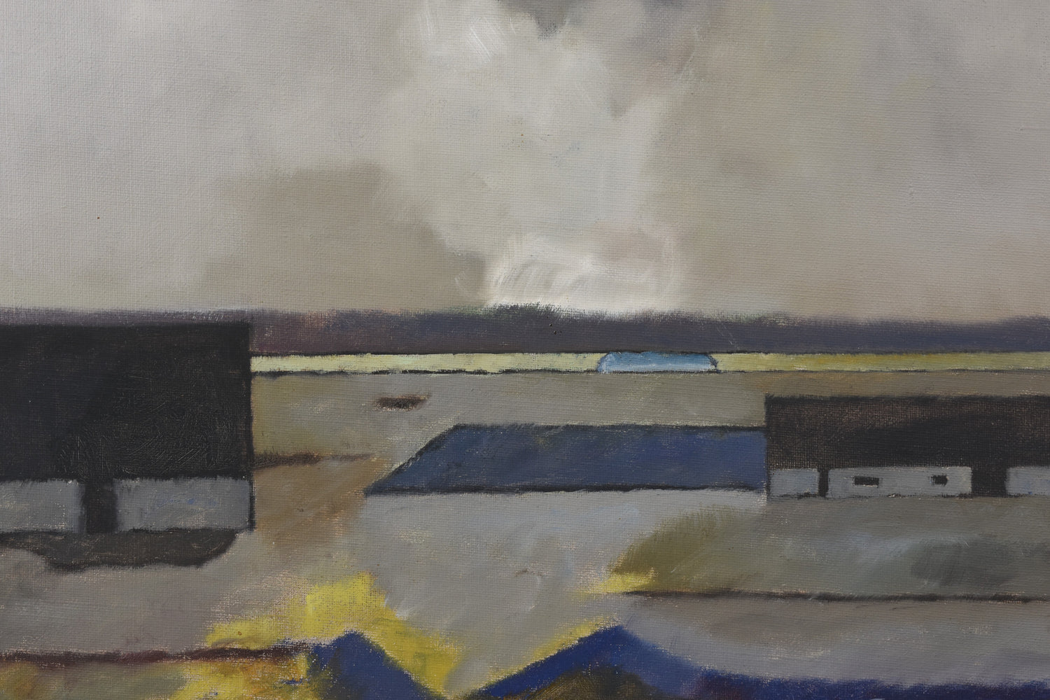 In this painting, the brightly lit scene captures what we sense is a warm, tranquil day in a rural location. Pale, delicate yellows emphasise the brilliance of the daylight, while the contrasting textural browns create a sense of movement. The compositional structure bears typical characteristics of work by Graae. As with this work, his paintings would often feature a distinctive, clear horizon with greater space devoted to a large open sky, while carefully placed fields and structures guide the eye around the canvas.