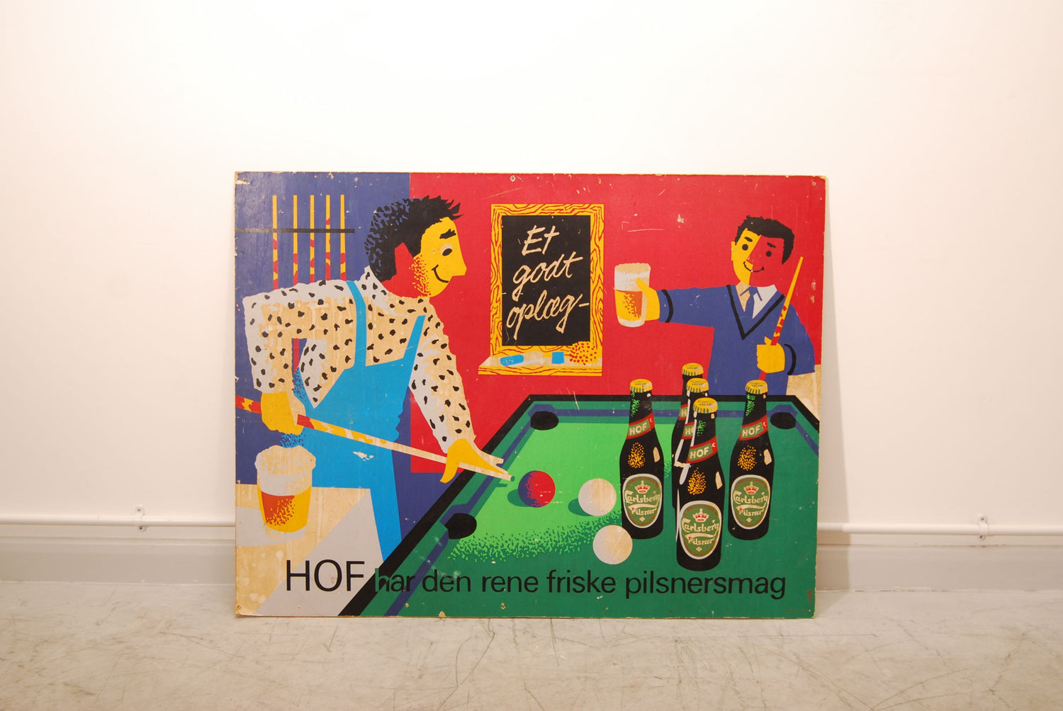 A vintage advertisement by Carlsberg mounted onto thick card. "Carlsberg/Hof has that clean, fresh pilsner taste." Denmark, 1960s.