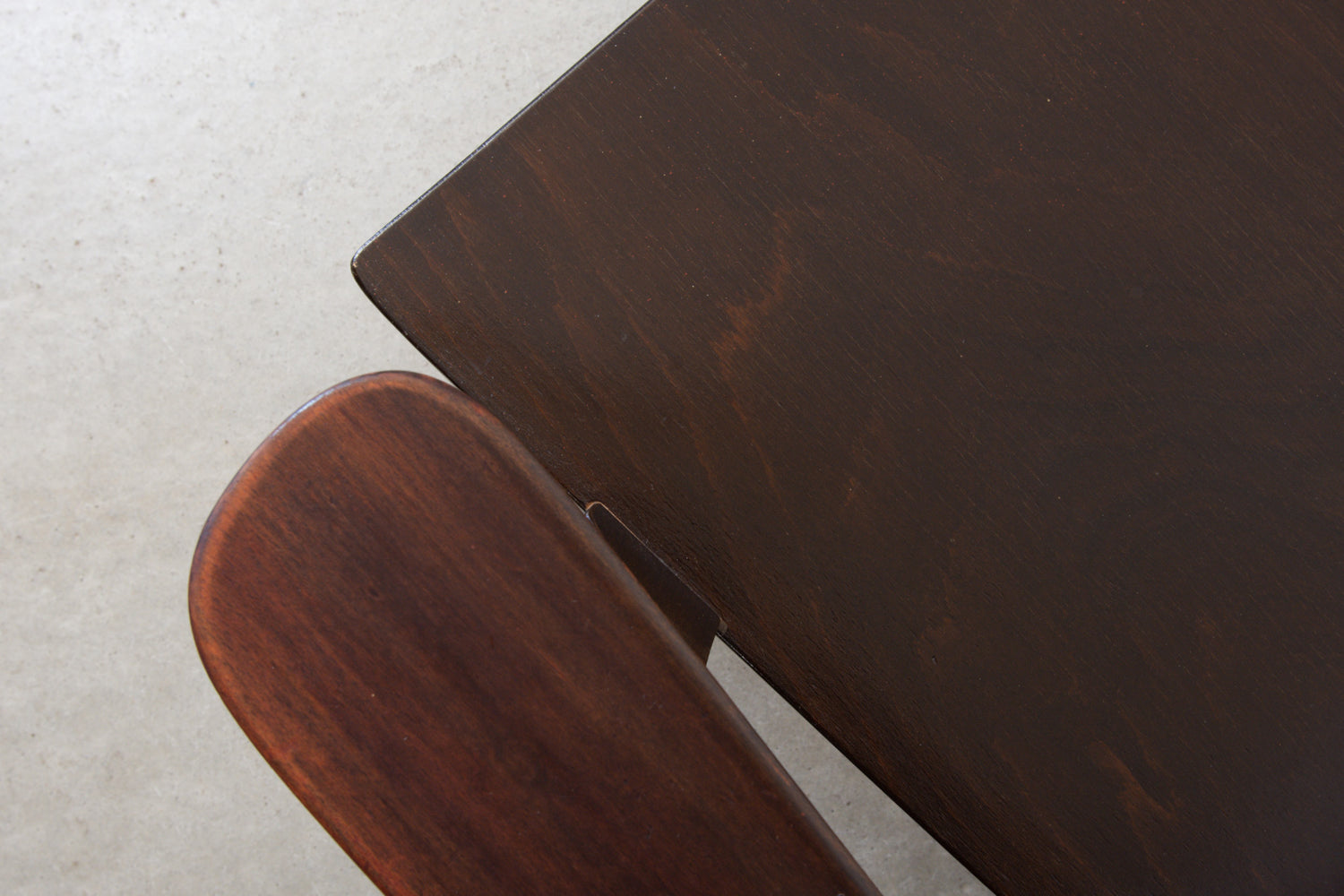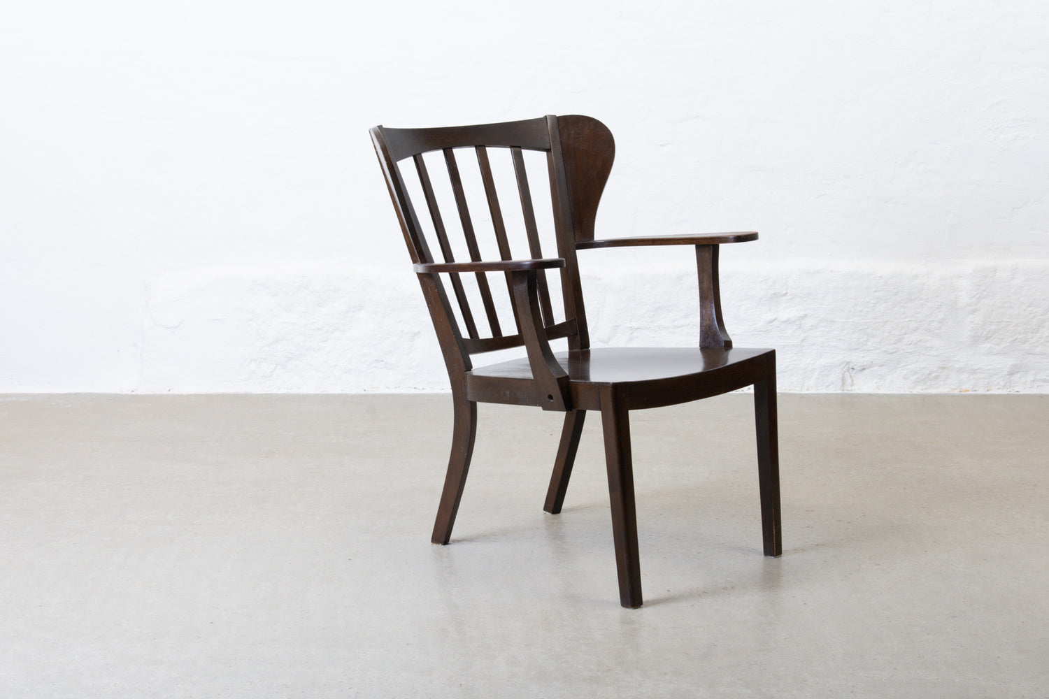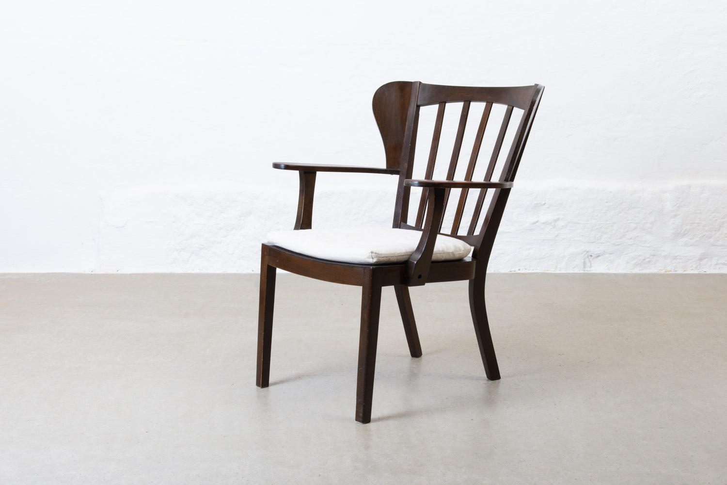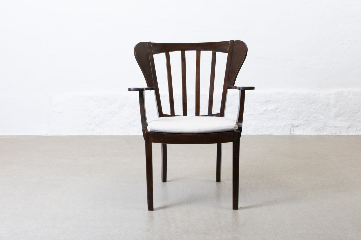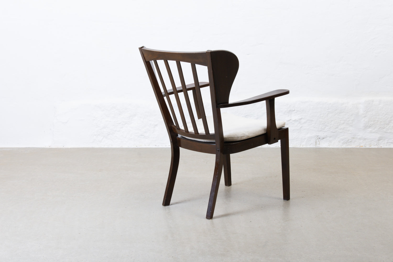 'Canada' armchair with a stained beech frame and its original cotton canvas pad cushion.