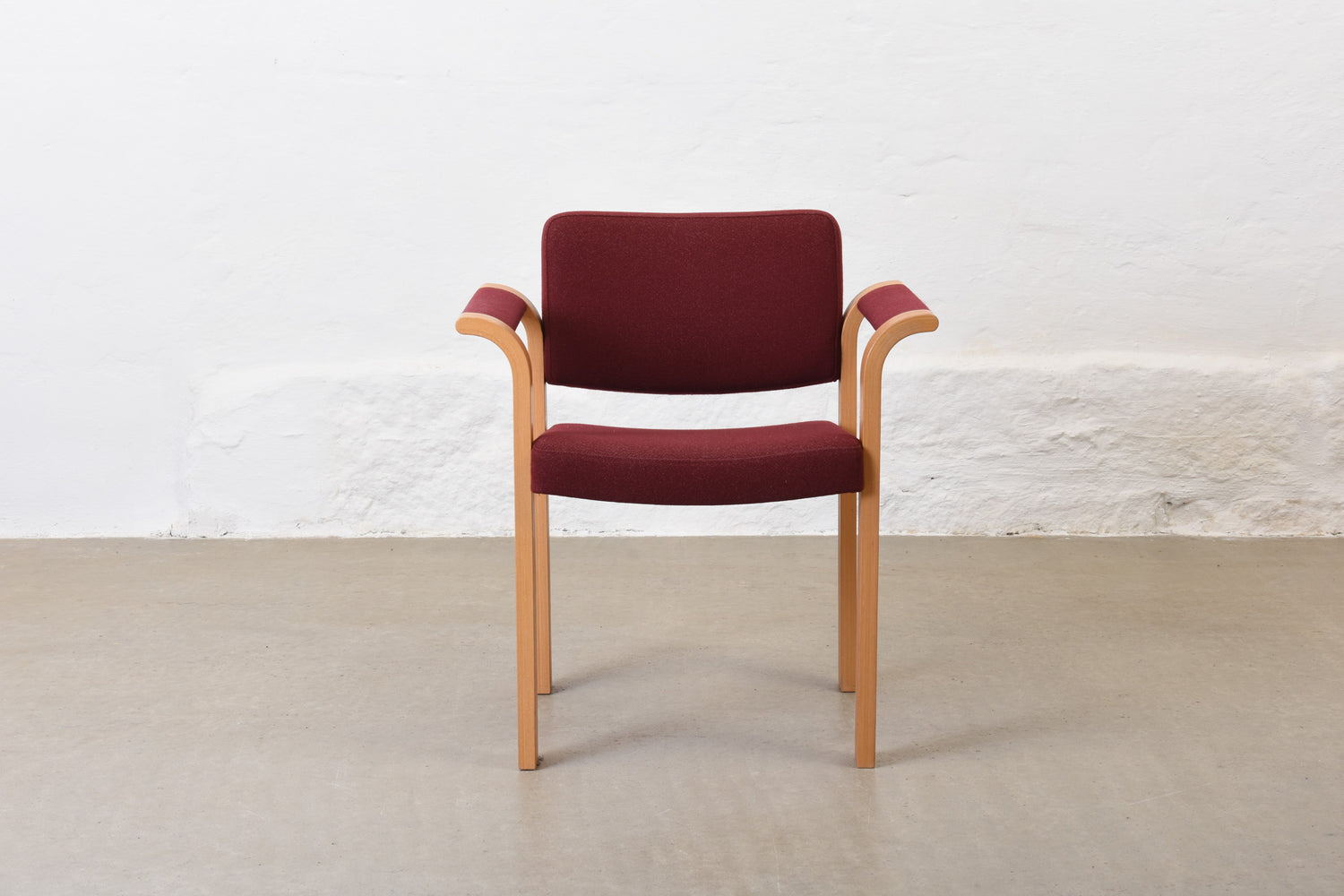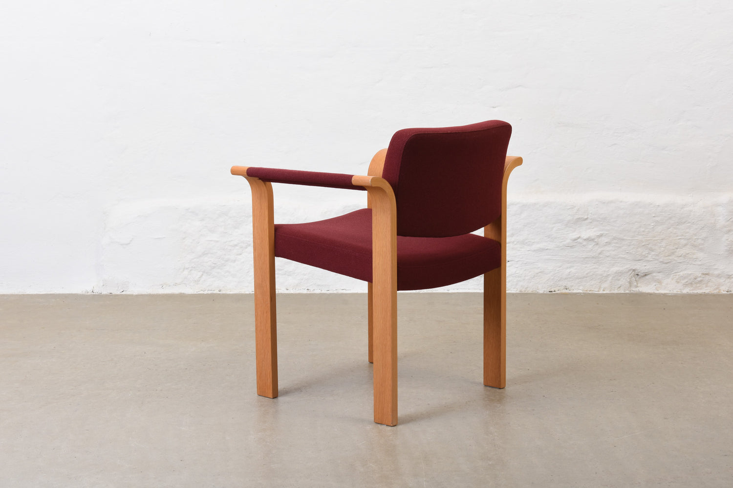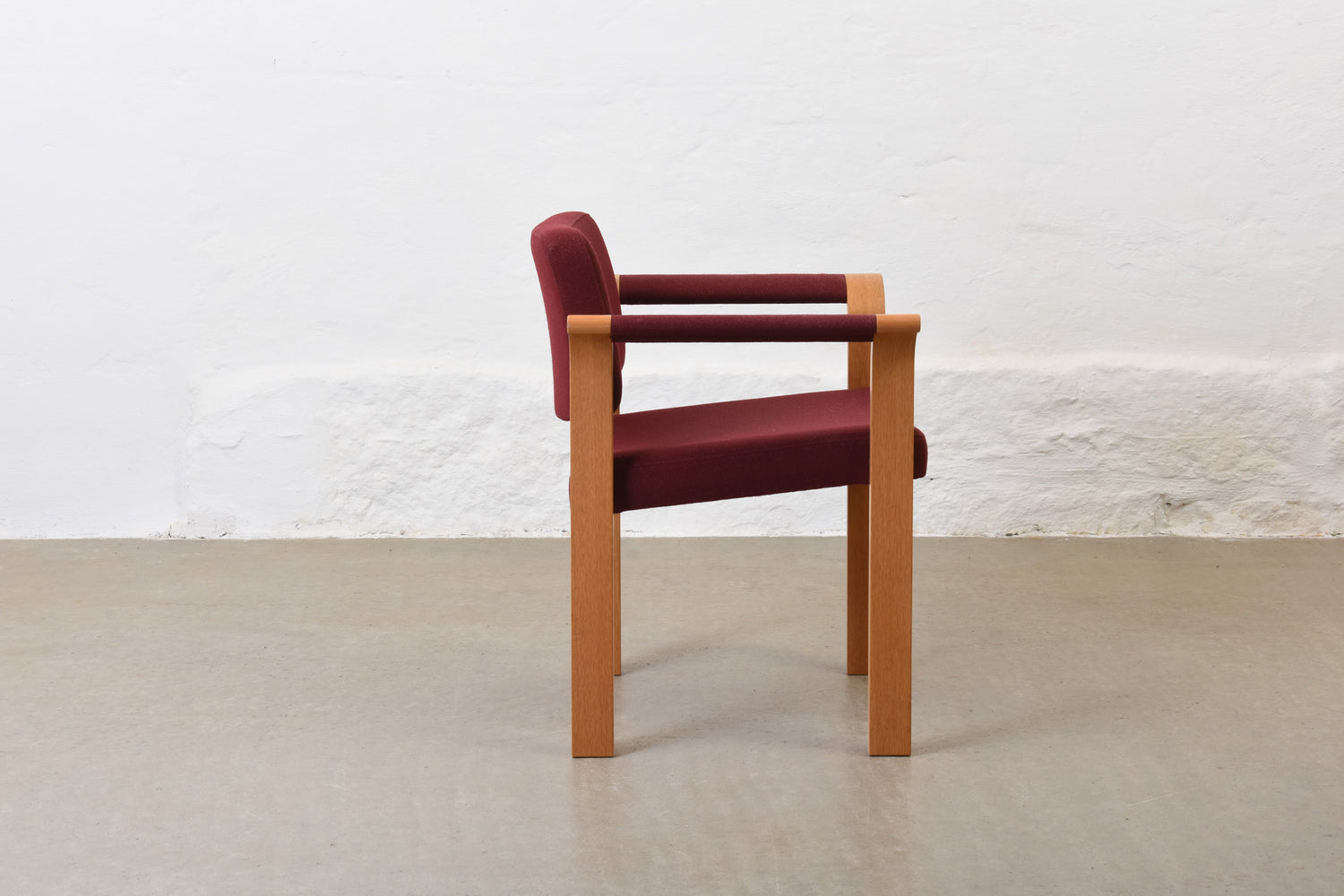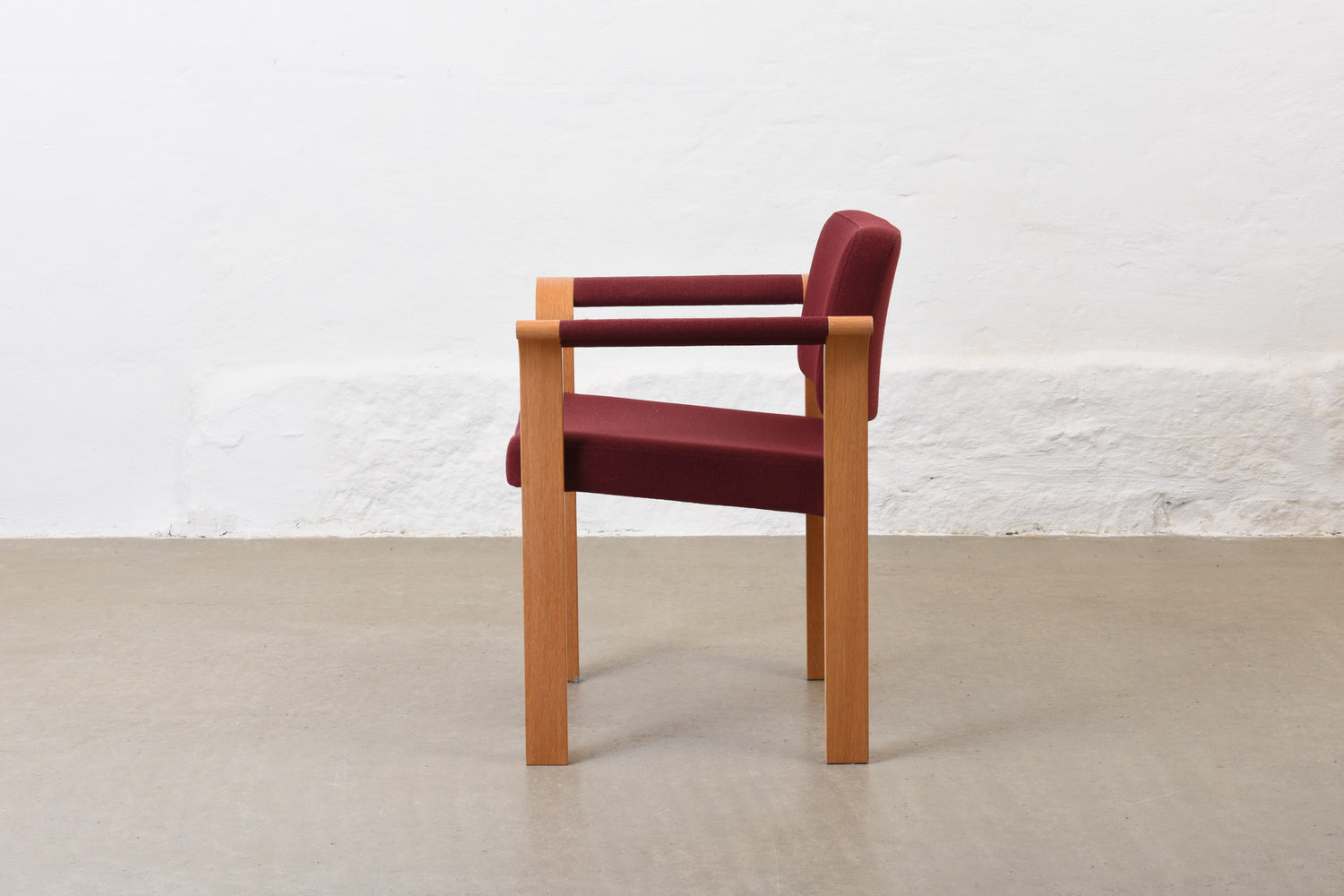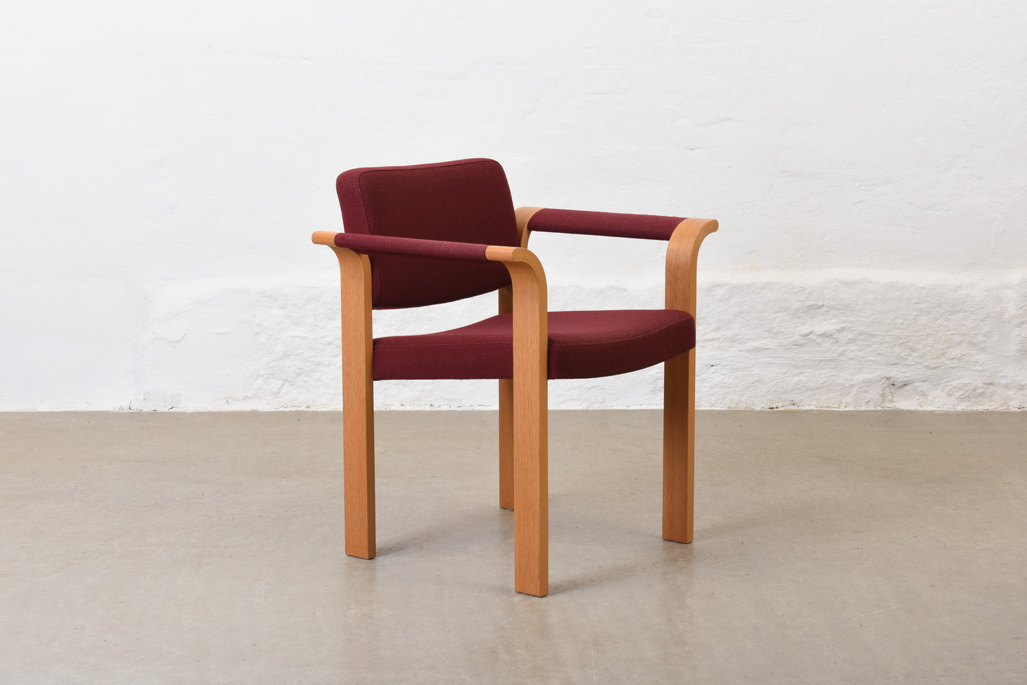 'Model 61' armchair in oak with padded seat and back upholstered in its original grey-flecked burgundy wool.