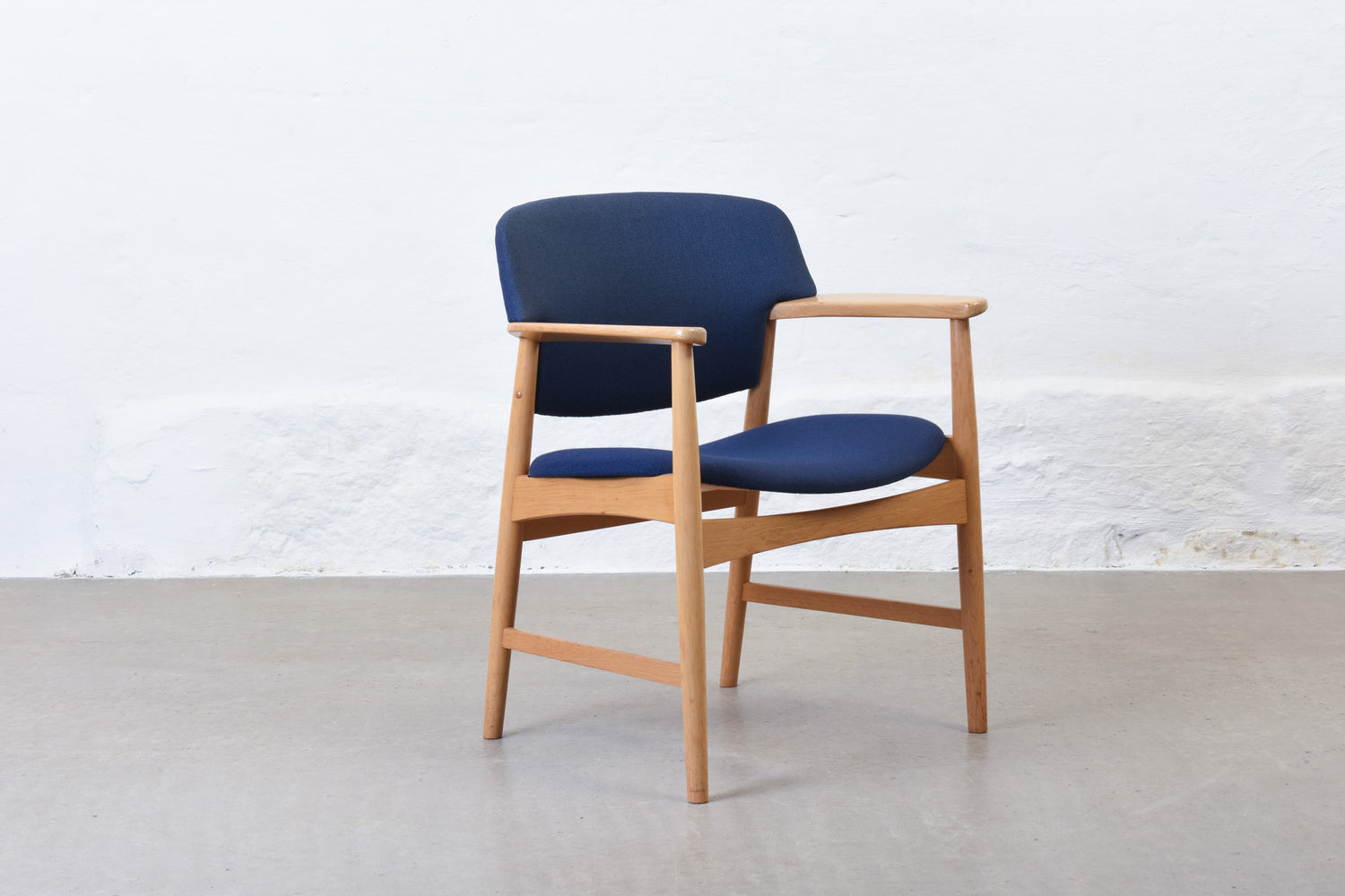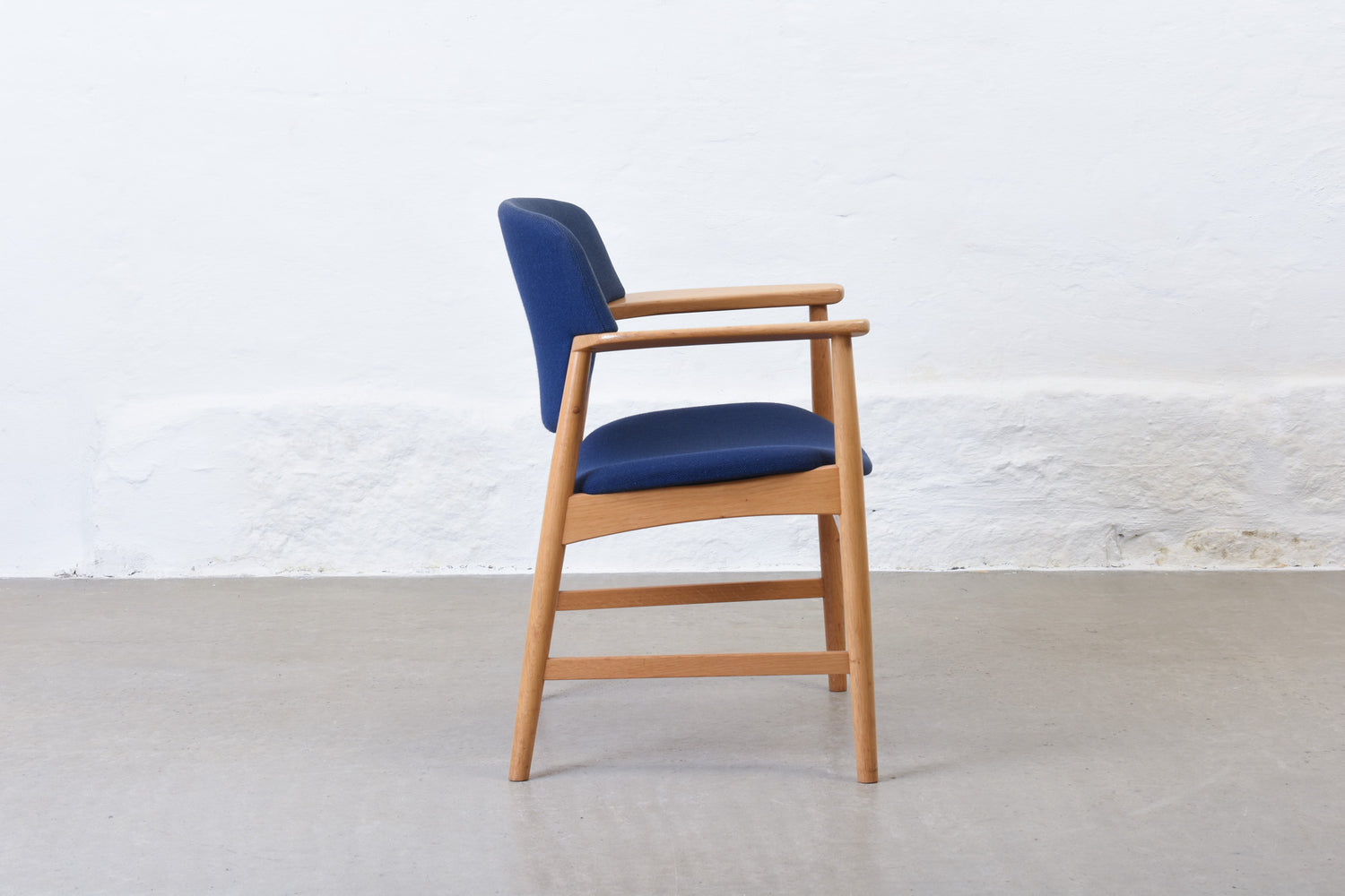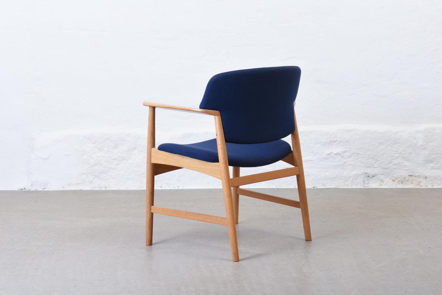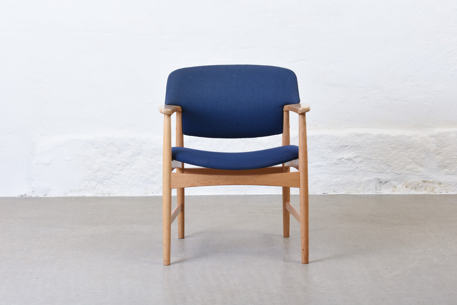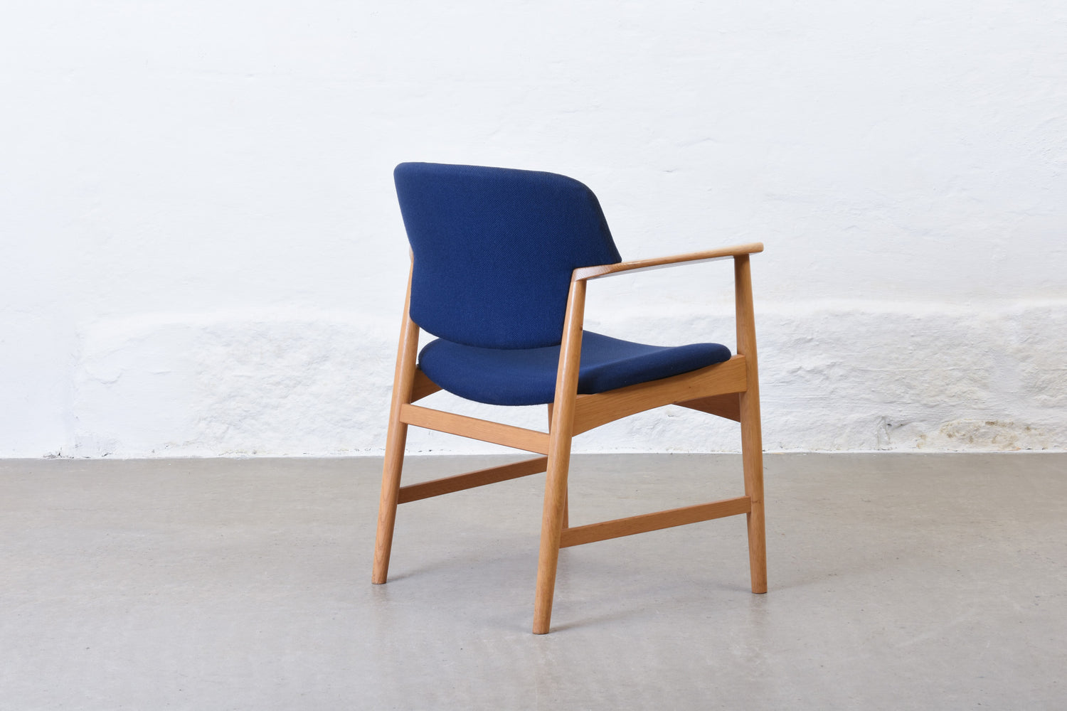 Model 4205 armchair in oak with padded seat/back upholstered in its original wool fabric.