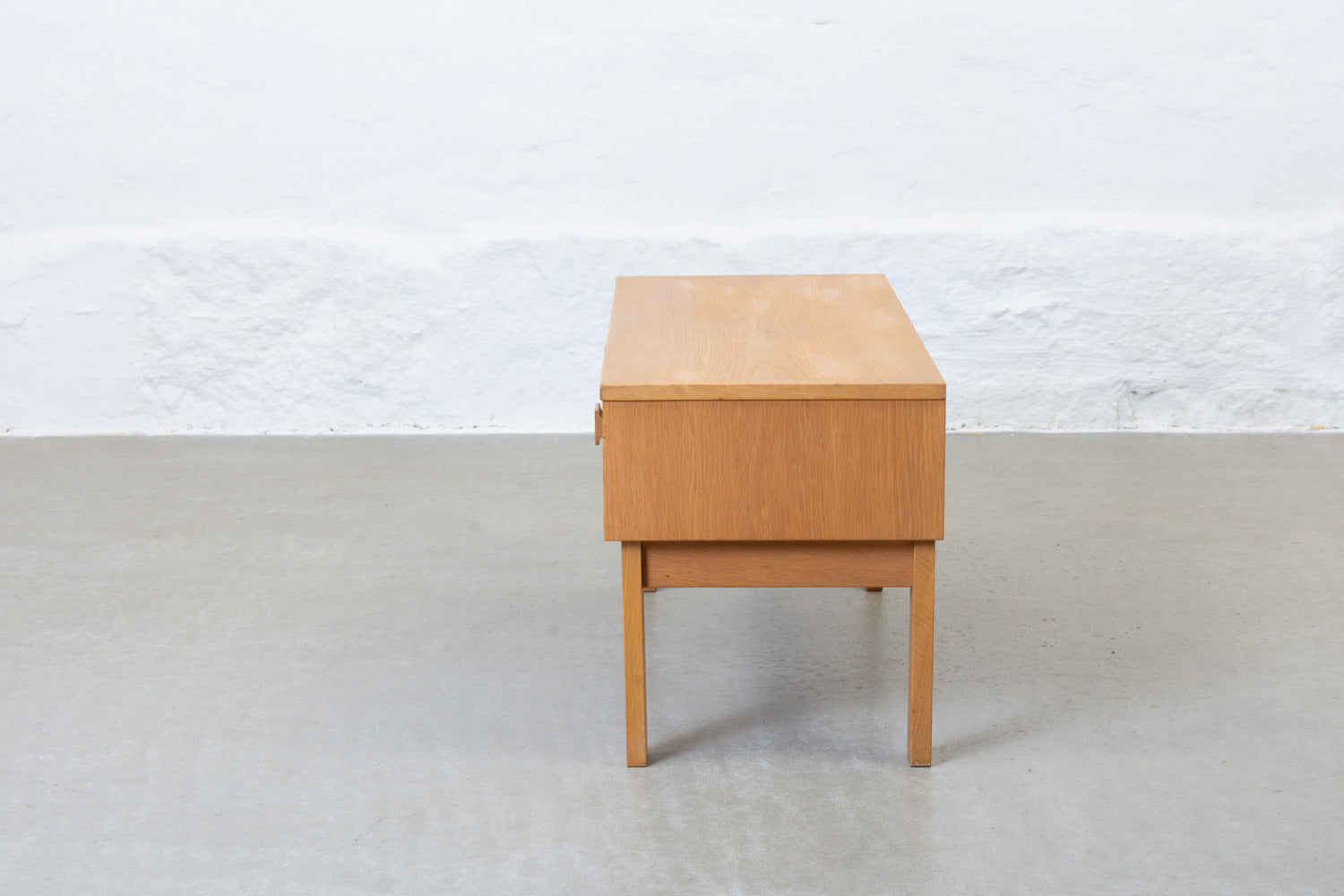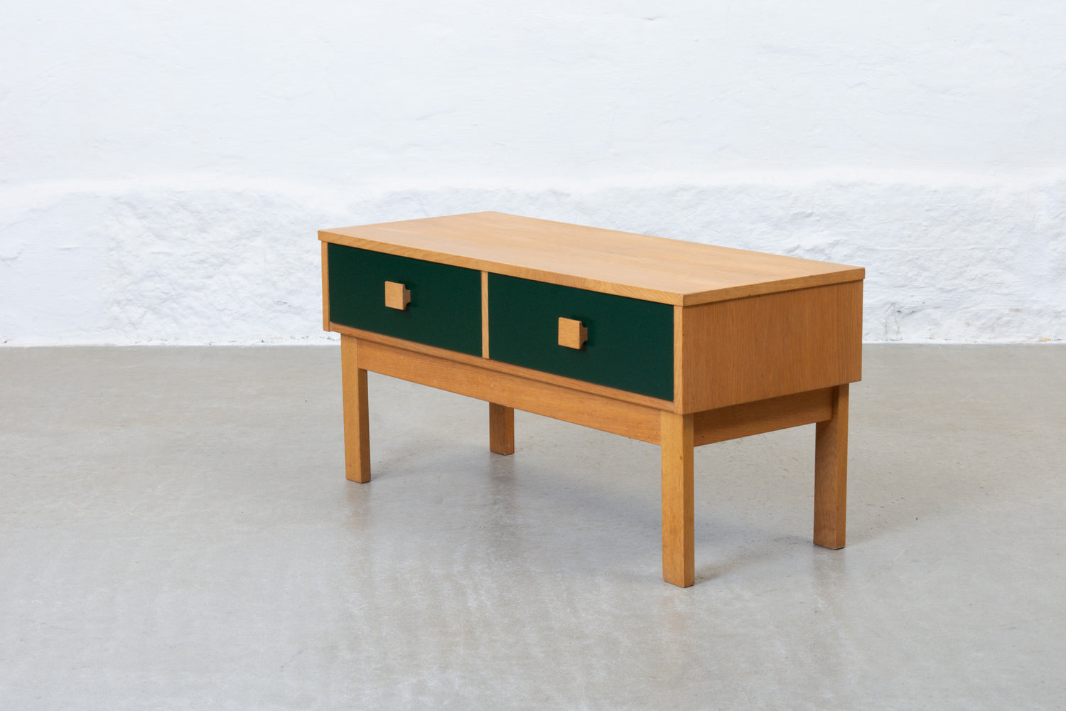 1970s low chest of two drawers in oak