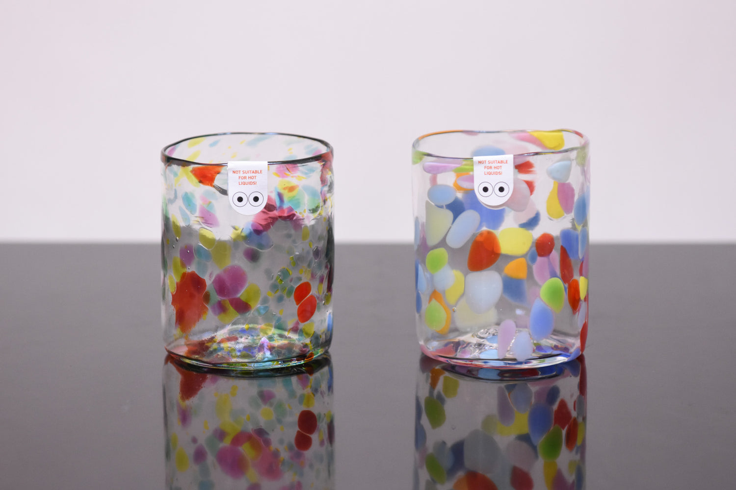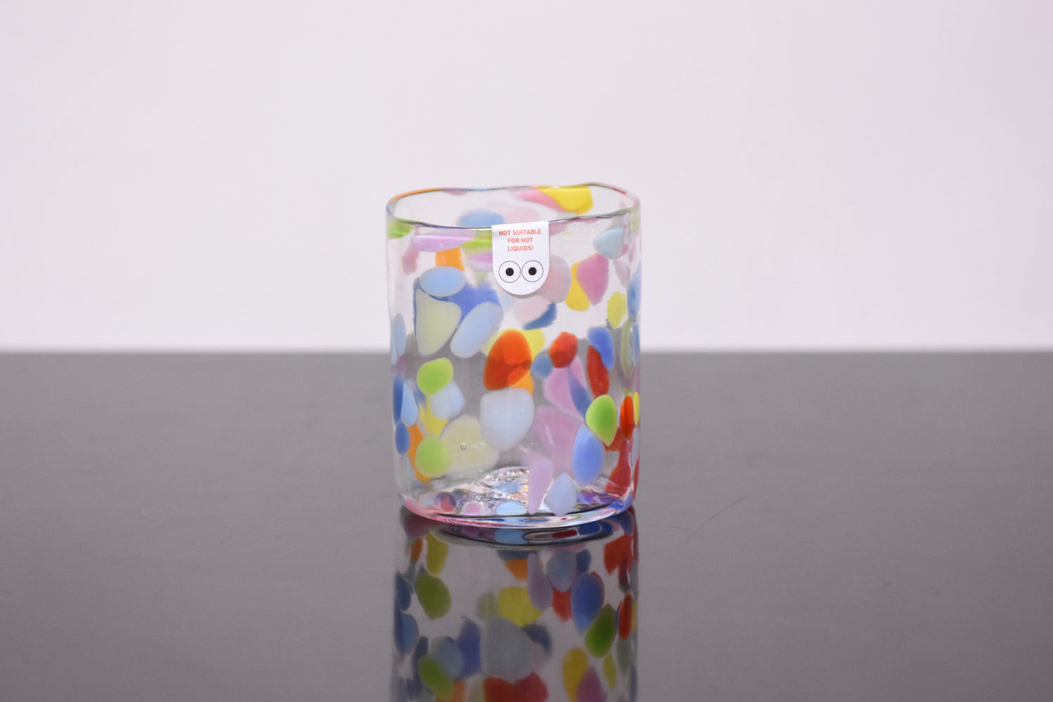The Confetti Glass is a colourful, unique tumbler mouth-blown and hand-stamped one at a time in Studio Arhoj's Copenhagen hot shop - no two are alike.
