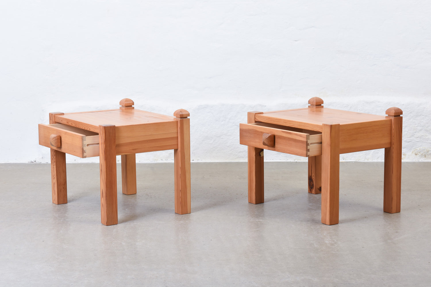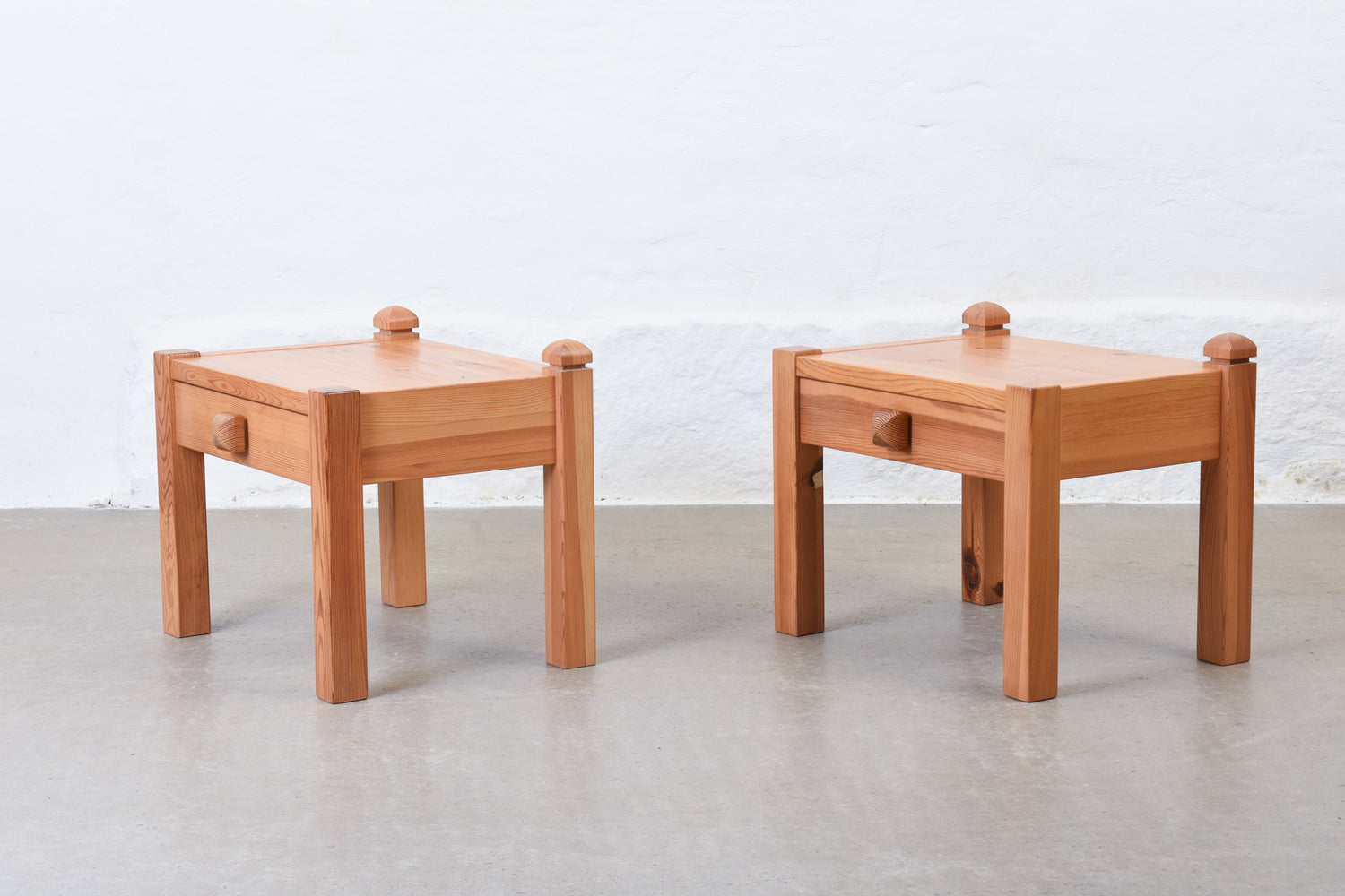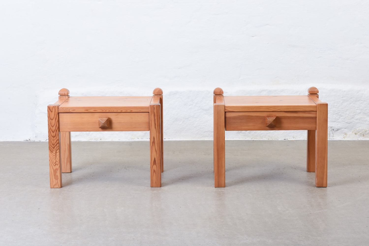 Matching pair of bedside tables in pine with drawer by NC Möbler.