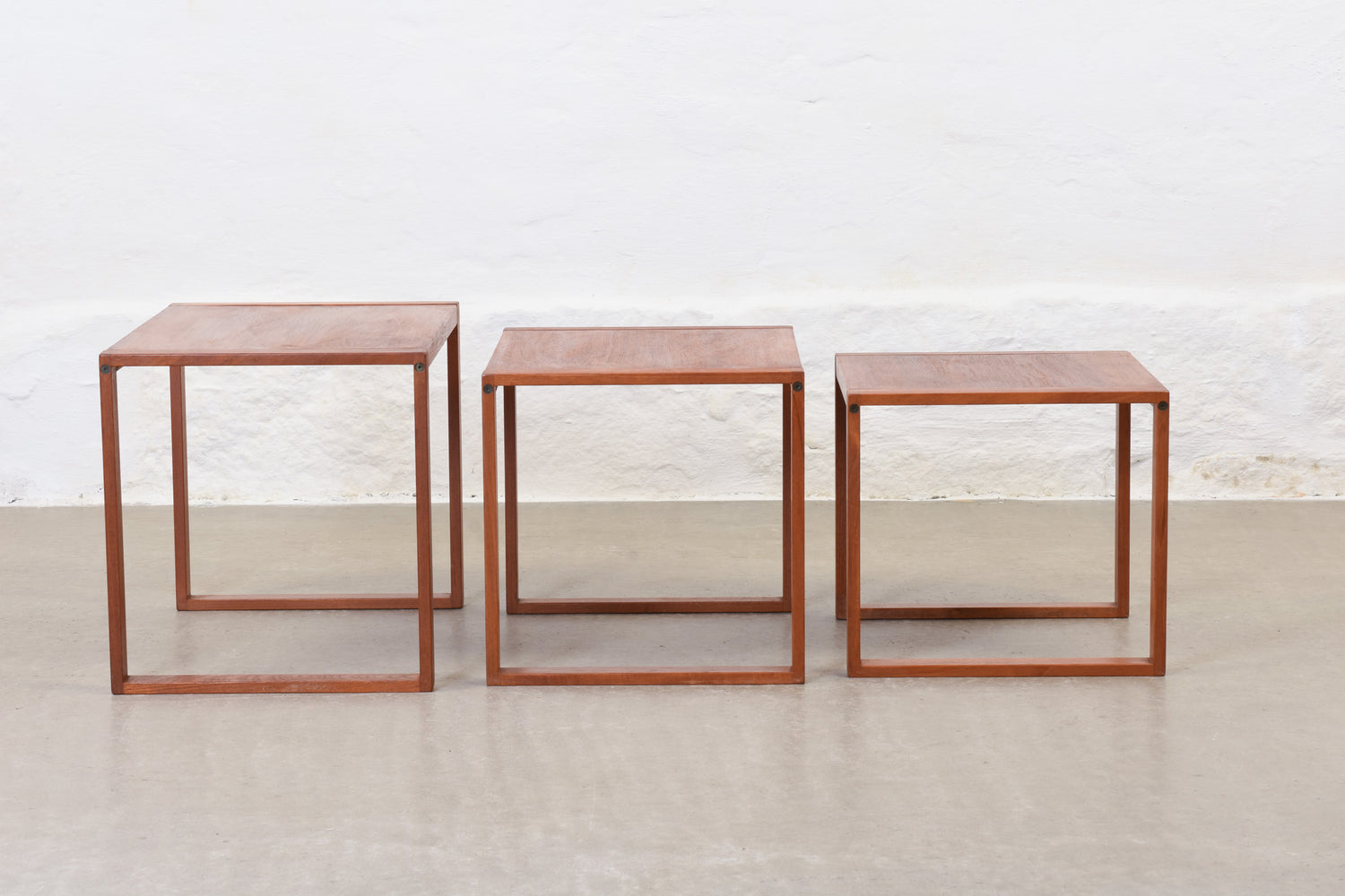 Nest of three tables in teak.