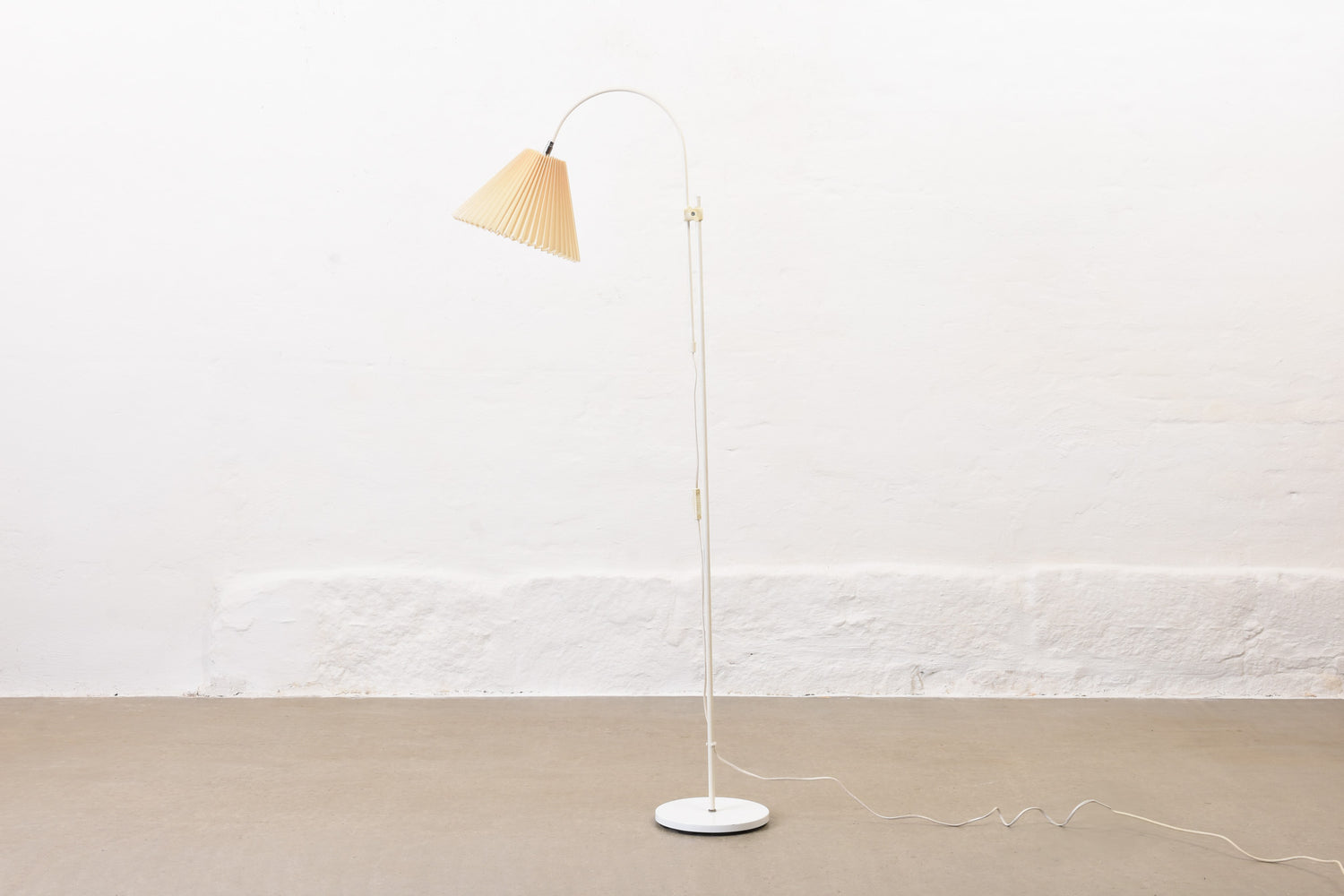 Vintage height-adjustable floor lamp in white-lacquered metal with an adjustable concertina shade.