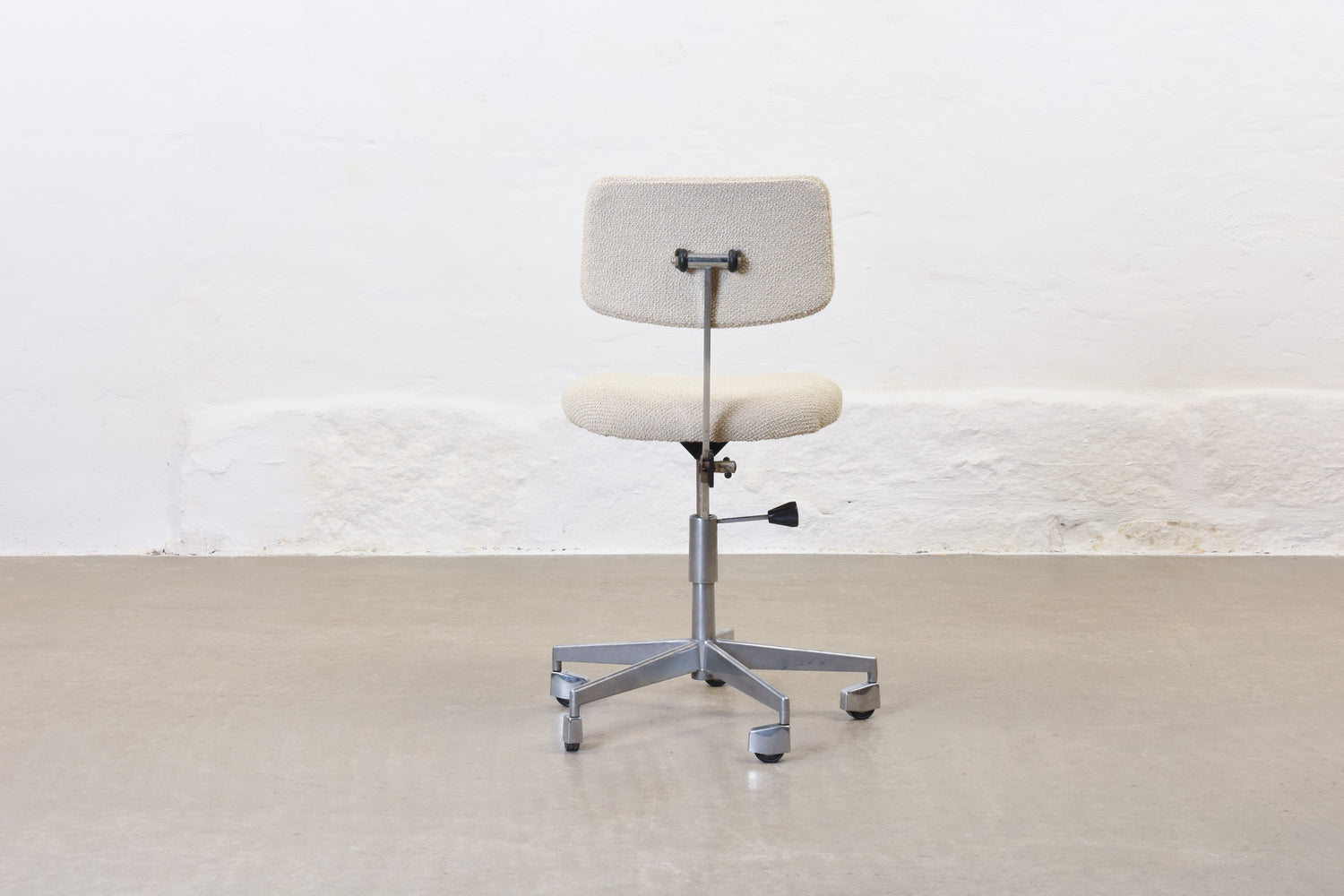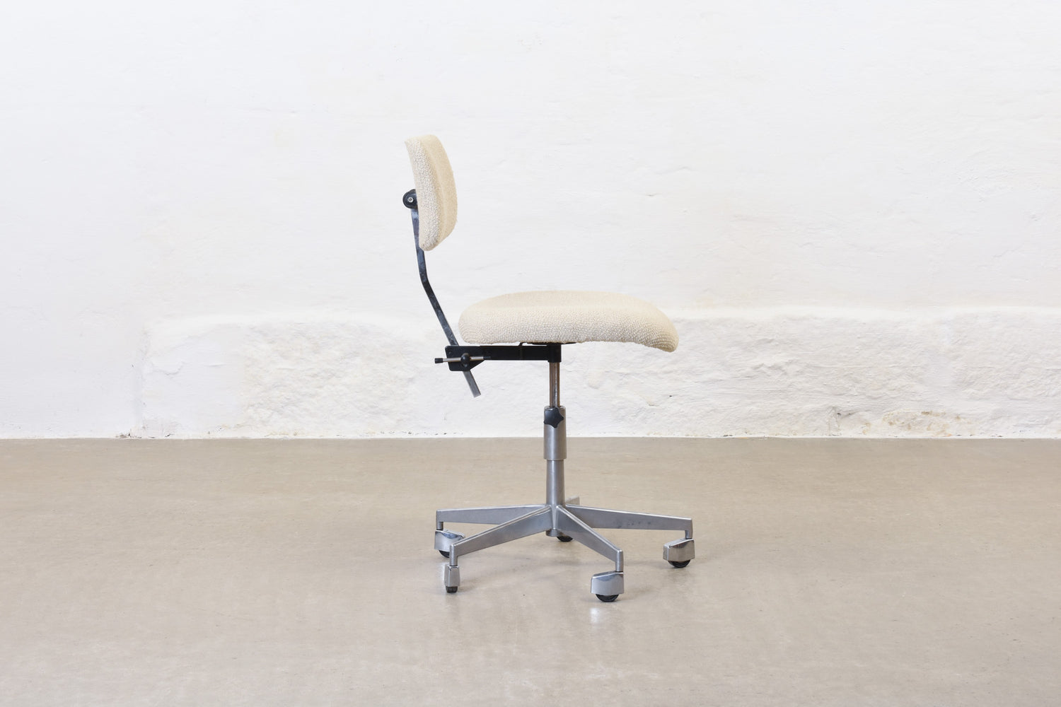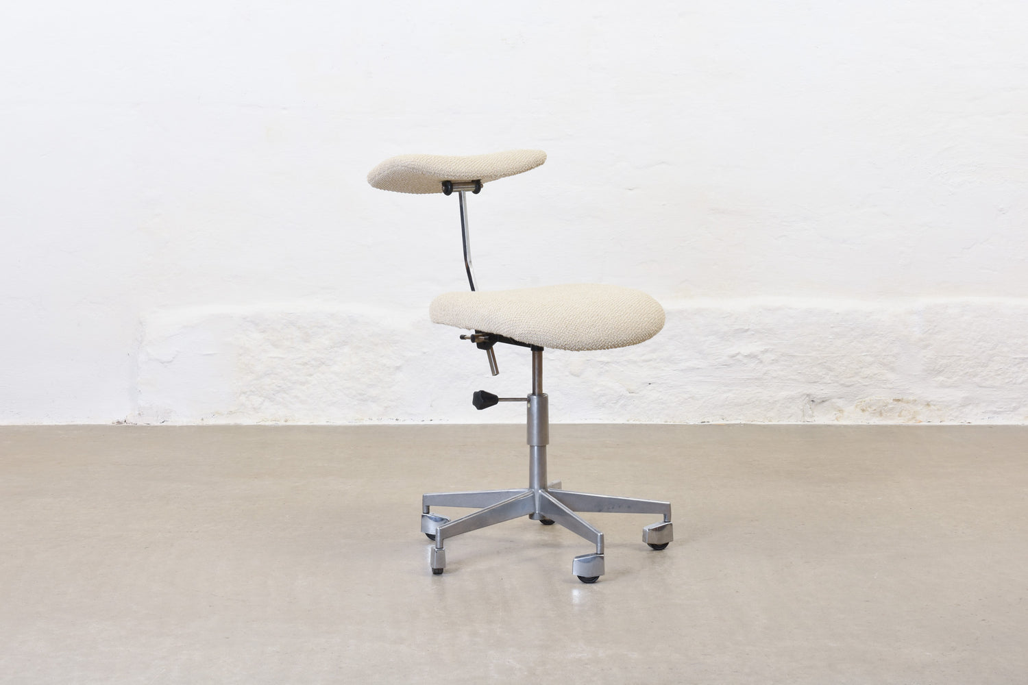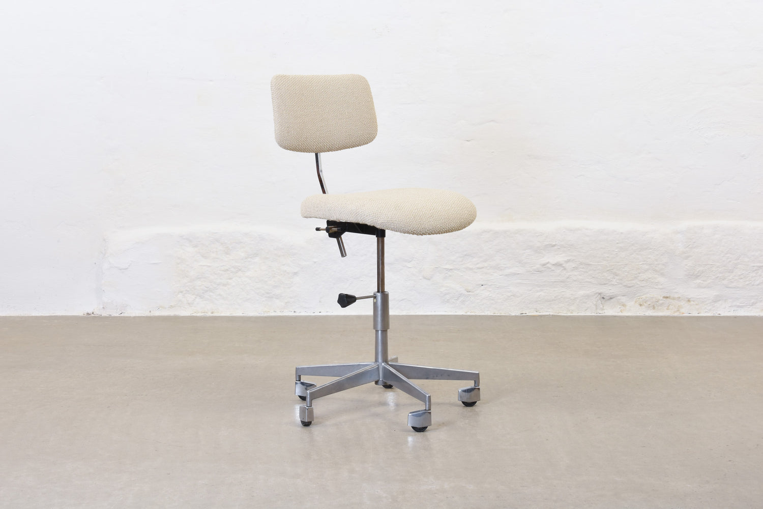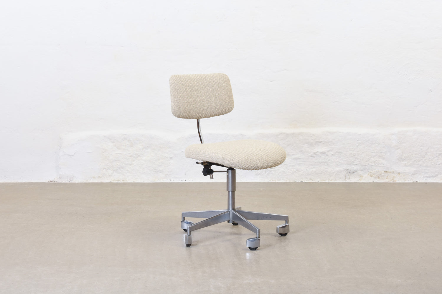 Vintage task chair by Labofa with fully adjustable seat and backrest. Features a metal swivel frame, its original castors and a padded seat/back newly reupholstered in a textured cotton/wool blend by Yarn Collective.