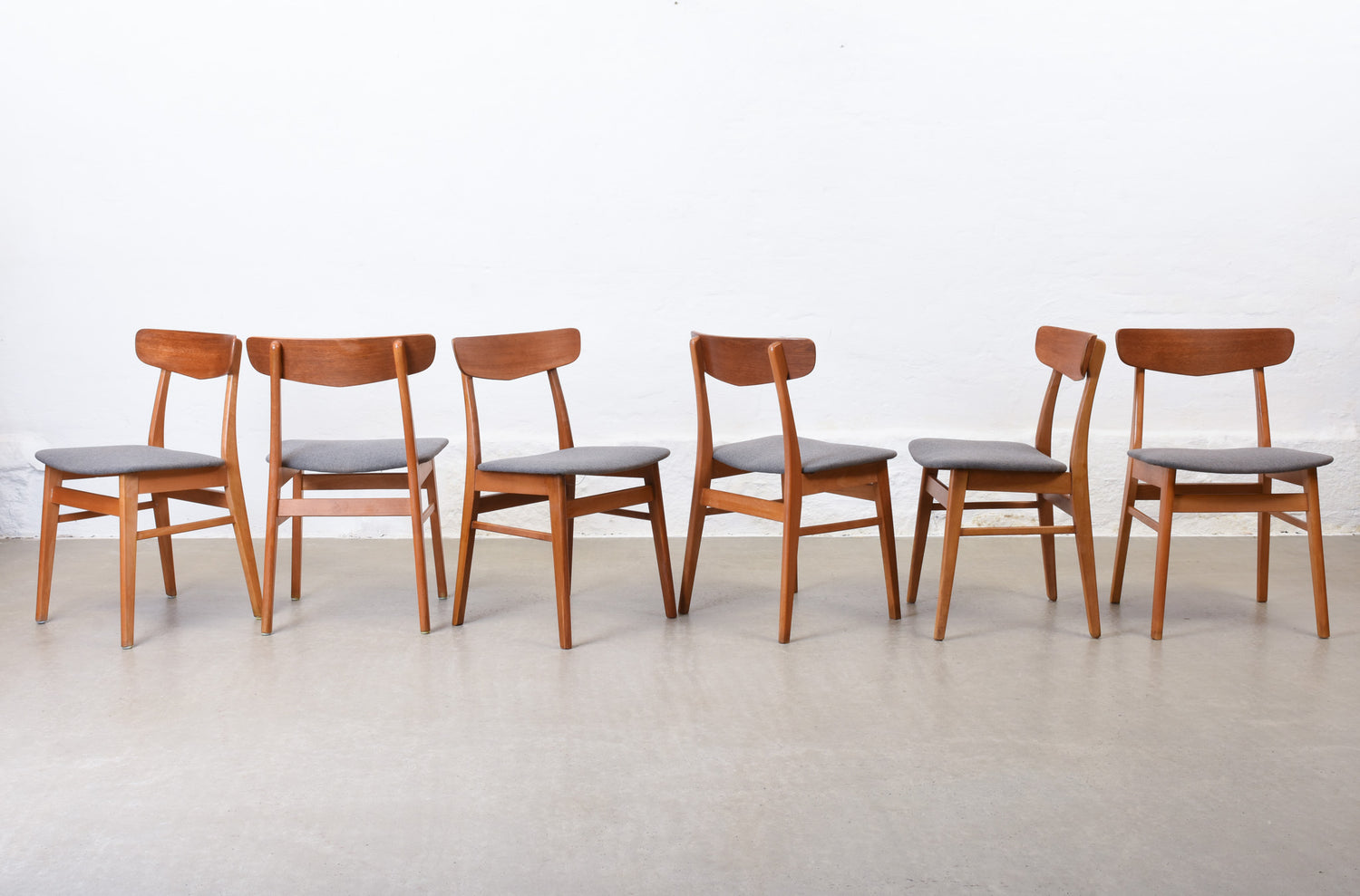 Newly reupholstered: 1960s set of six teak + beech dining chairs by Findahls