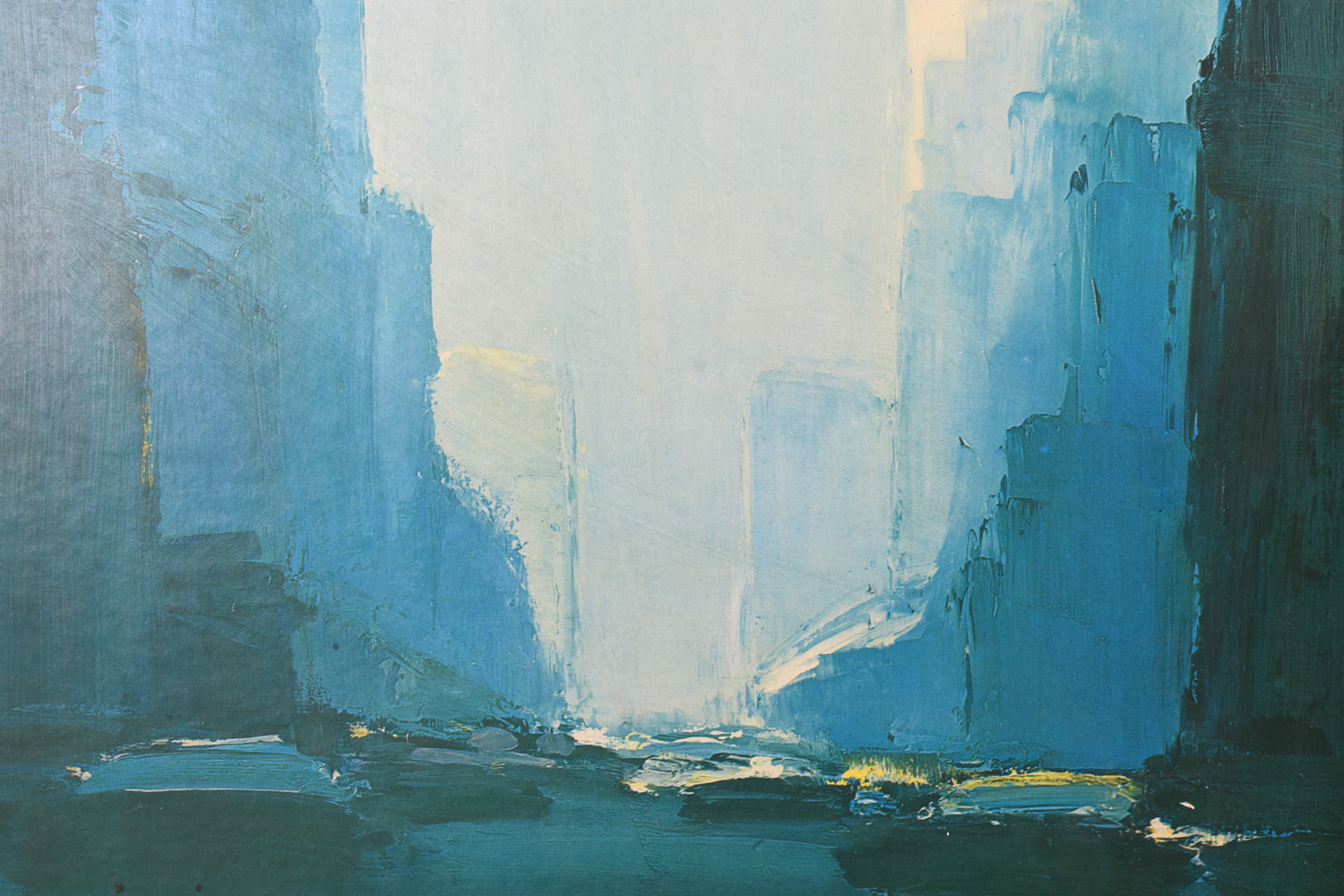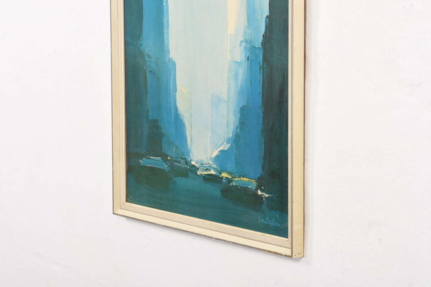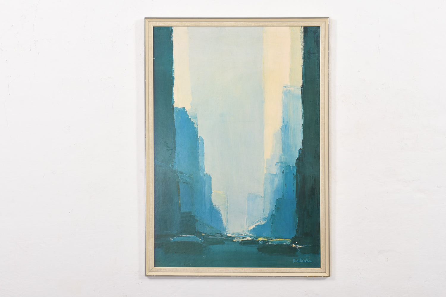 Professionally mounted and framed 'Blue Town' art print by French visual artist Pierre Doutreleau (b. 1938).