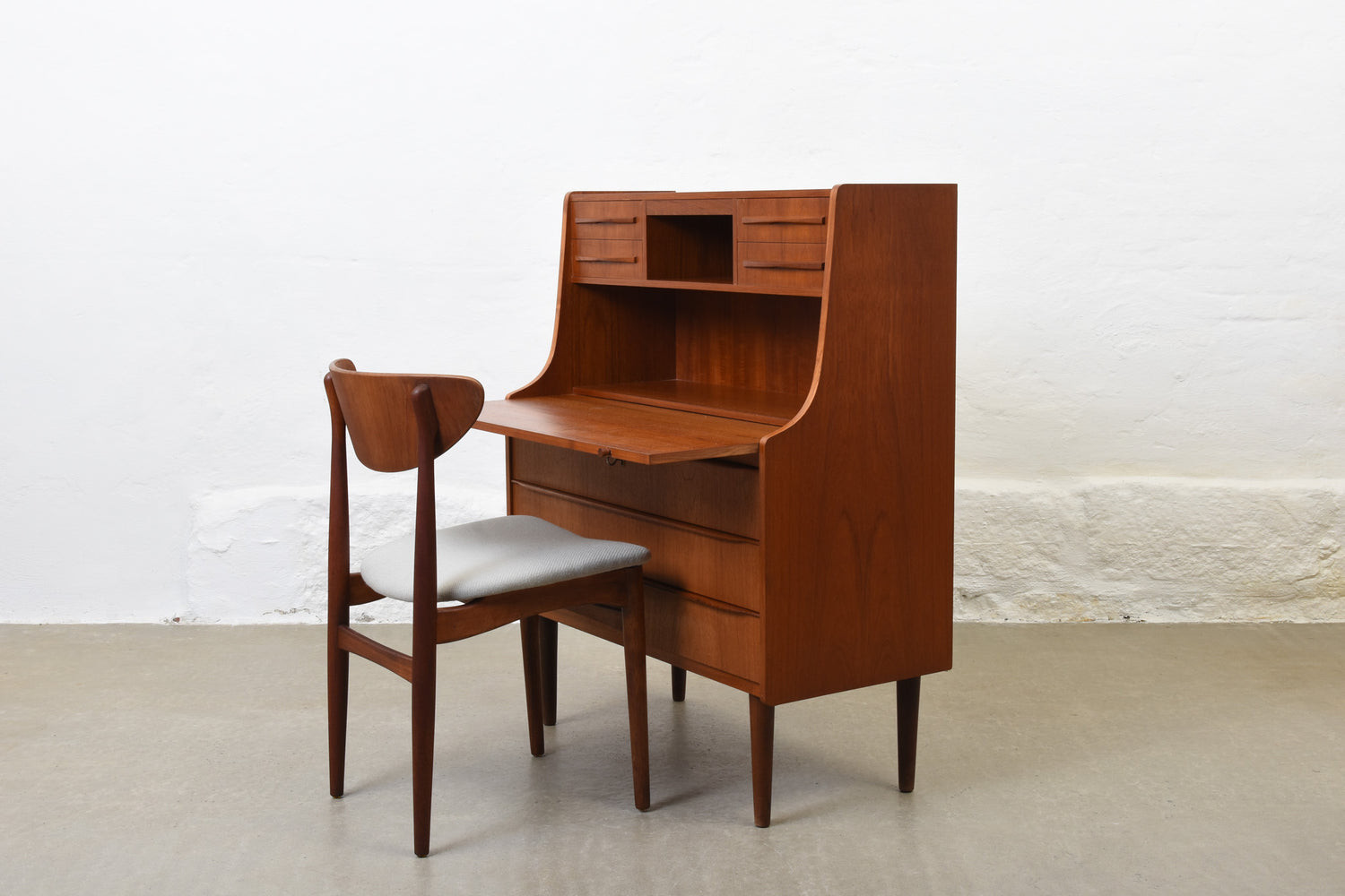 Dresser/bureau in teak with a selection of drawers, hidden mirror and pull-out worktop.