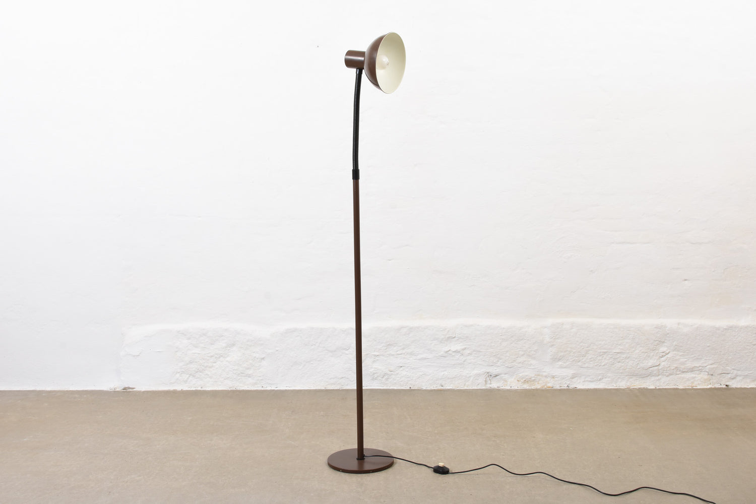 Vintage 'Bunker' floor lamp in metal with adjustable stem and brown lacquer finish.