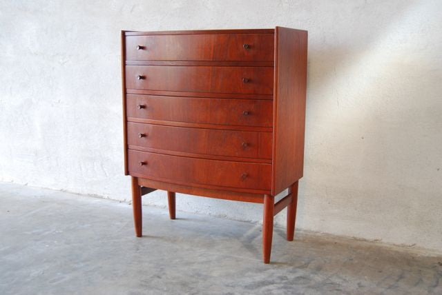Bow-fronted chest of drawers in teak