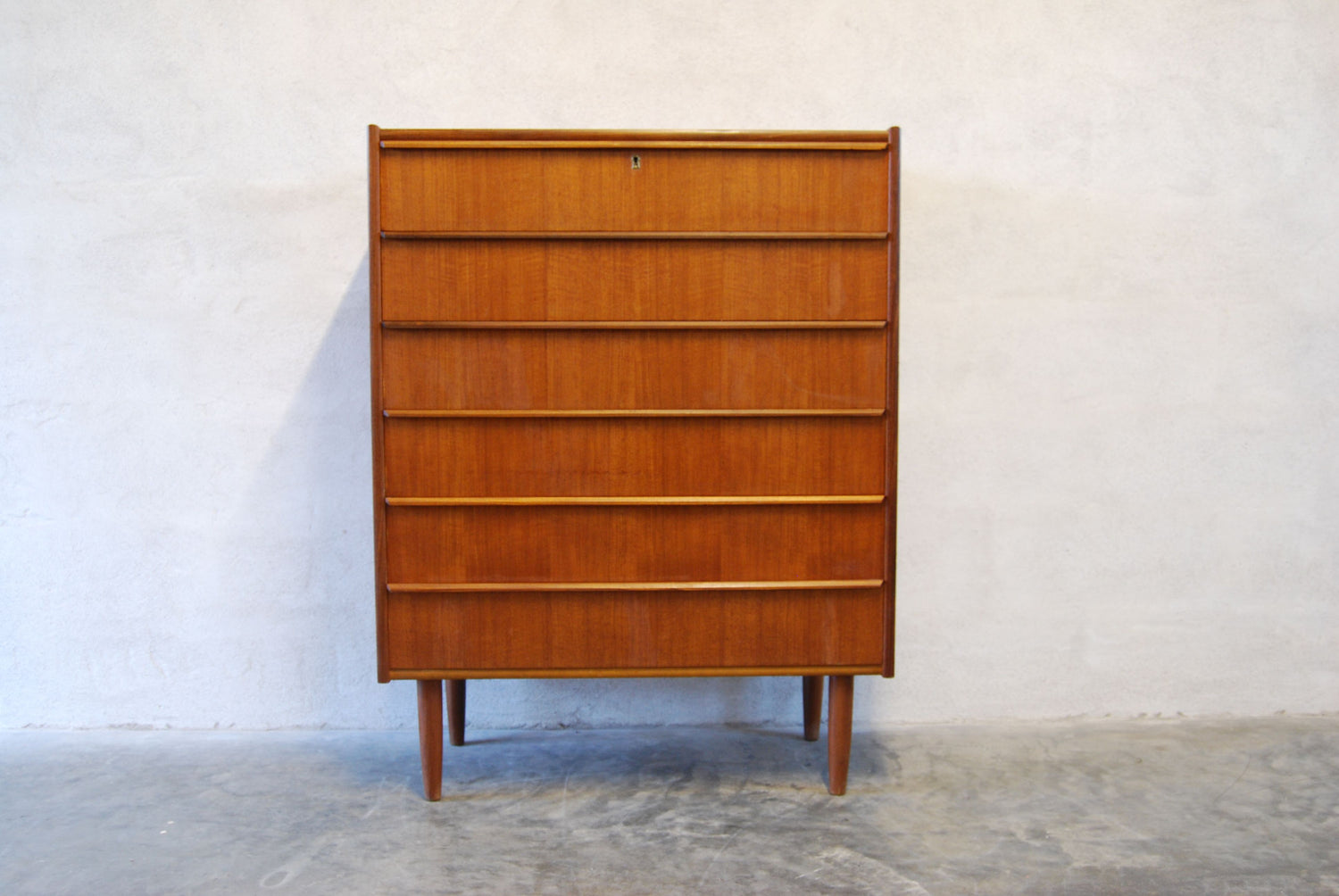 Chest of six drawers in teak with lipped handles. Produced by Hanbjerg Míëí_belfabrik. Denmark, 1960s.