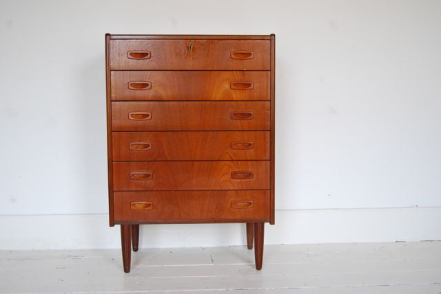 Stunning chest of six drawers in teak with a lockable top drawer.