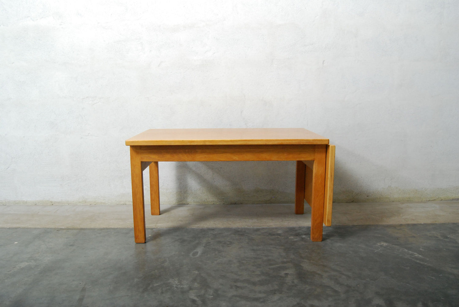 A soaped oak coffee table with sliding drop leaf by Hans J. Wegner for Getama.