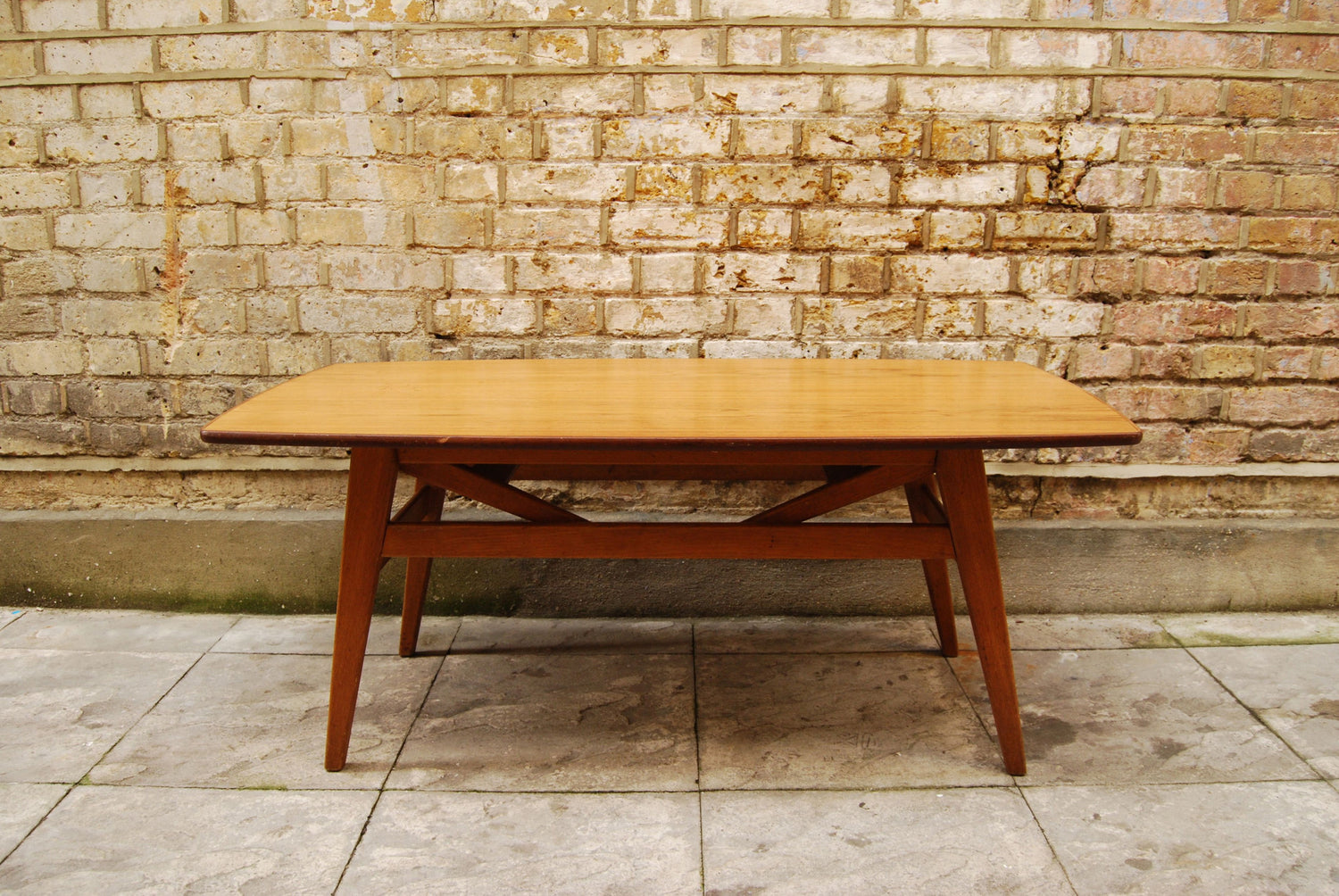 A height-adjusting teak and oak coffee table. Denmark, 1960s.