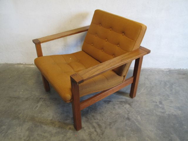 Lounge chair in mustard wool with a teak frame. Designed by Ole Knudsen and produced by France & Son. Denmark, 1960s. We also have a matching three seat modular sofa in stock as well.