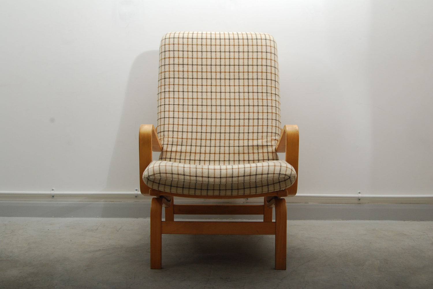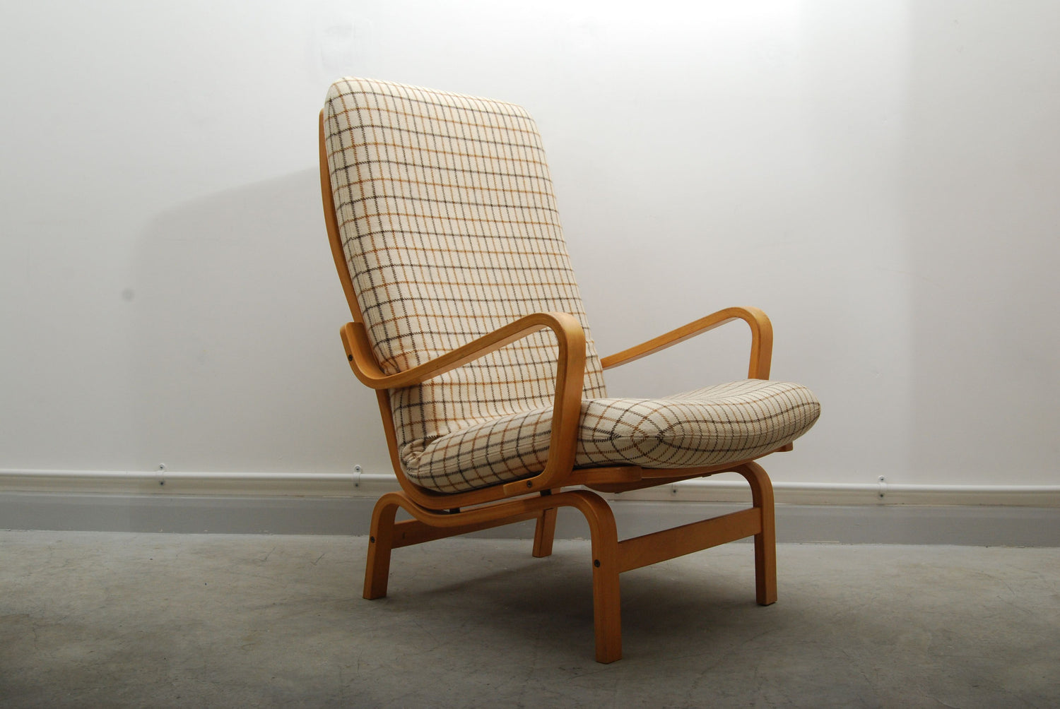 Beech lounge chair by Yngve Ekstr̦m for Swedese. Wool upholstery, foam cushion. Very cosy and comfortable.