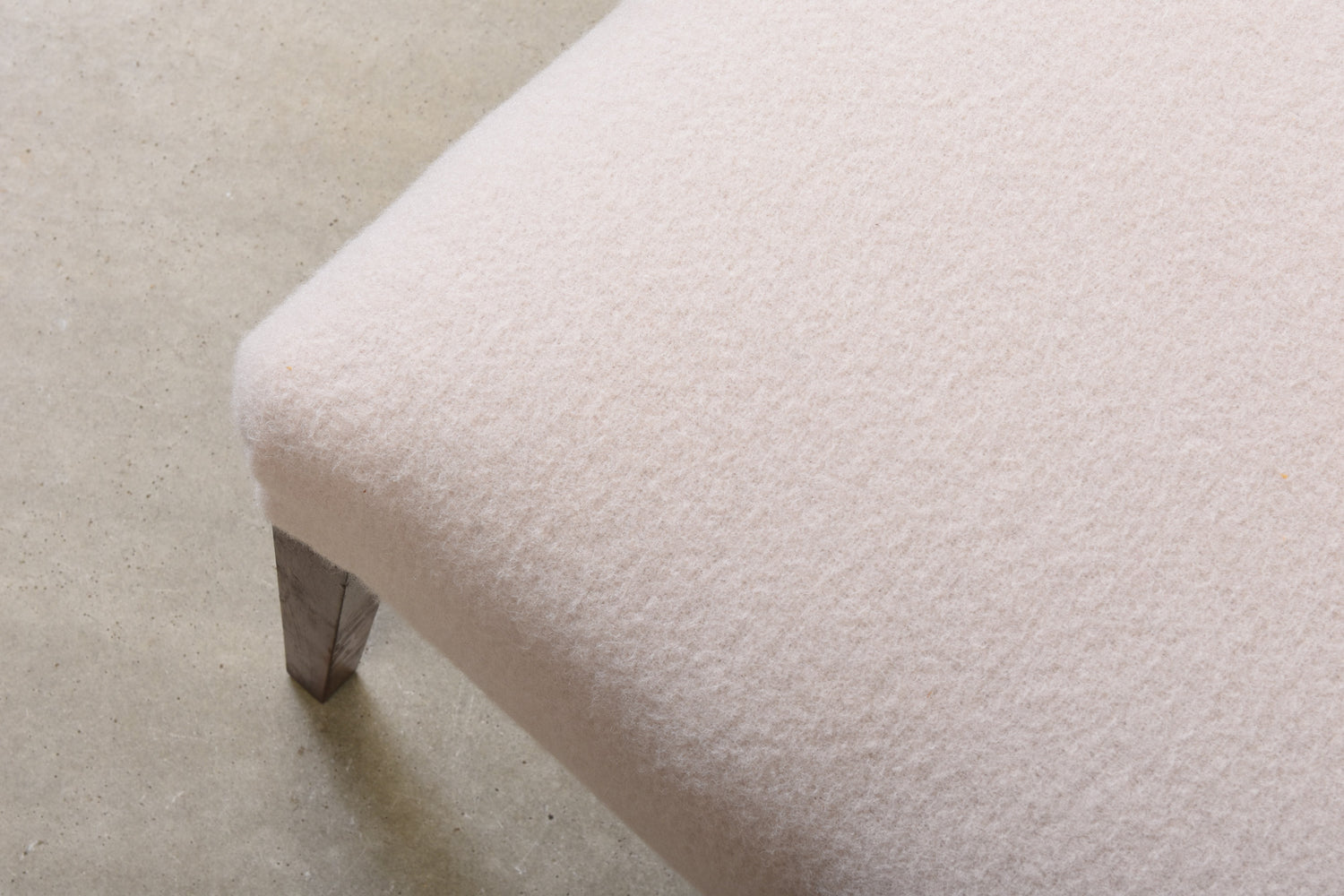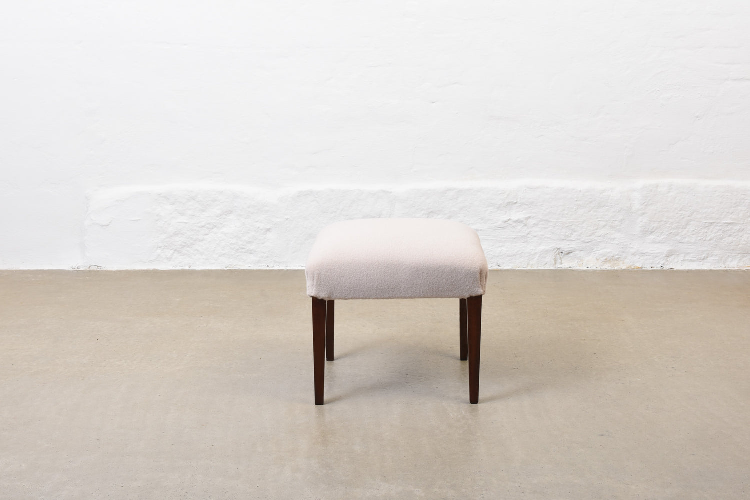 Foot stool with padded top newly reupholstered in felt wool. Sits on stained beech legs.