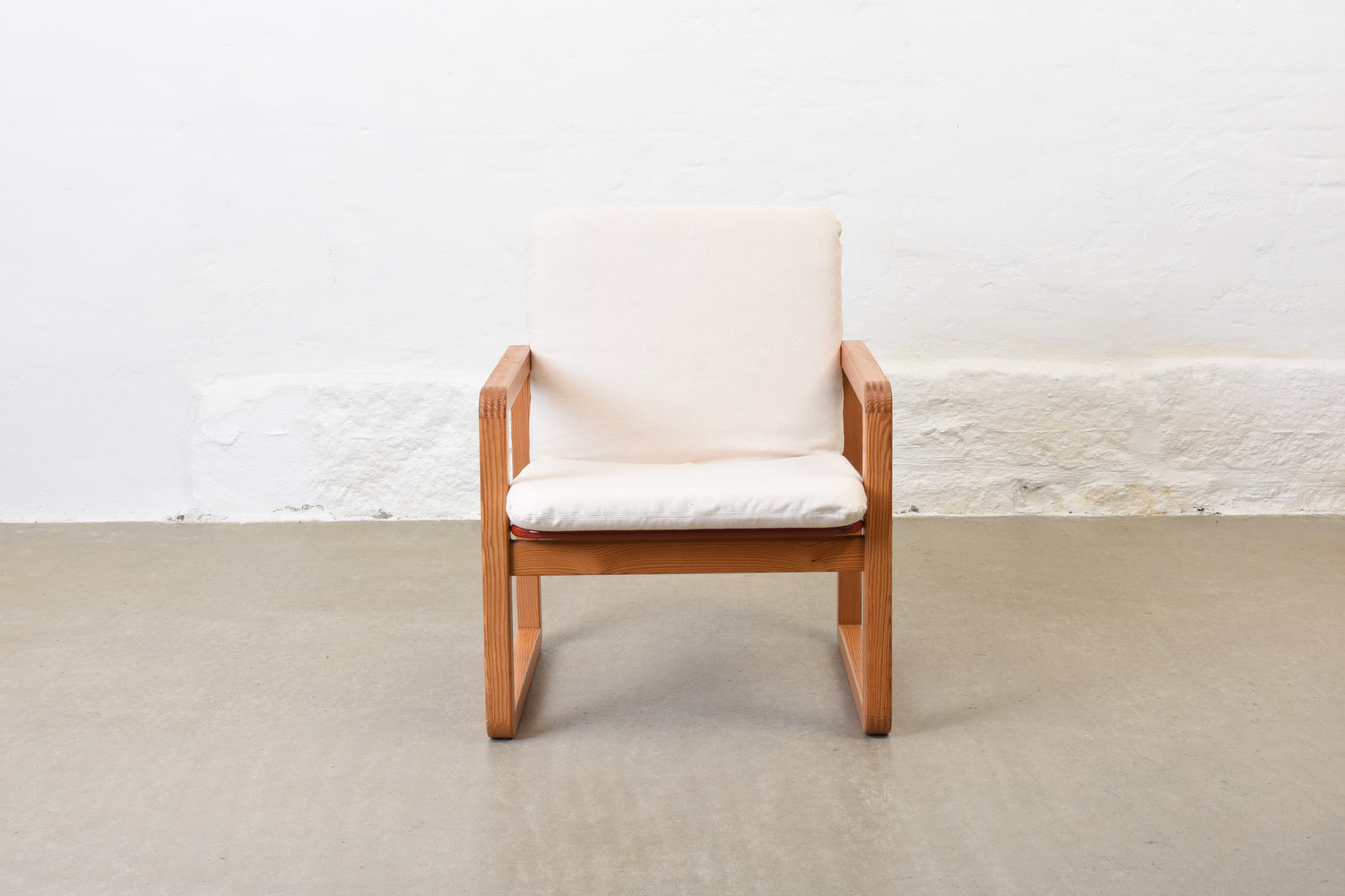 Newly reupholstered: 1980s pine + wire mesh lounger by Knut Hagberg