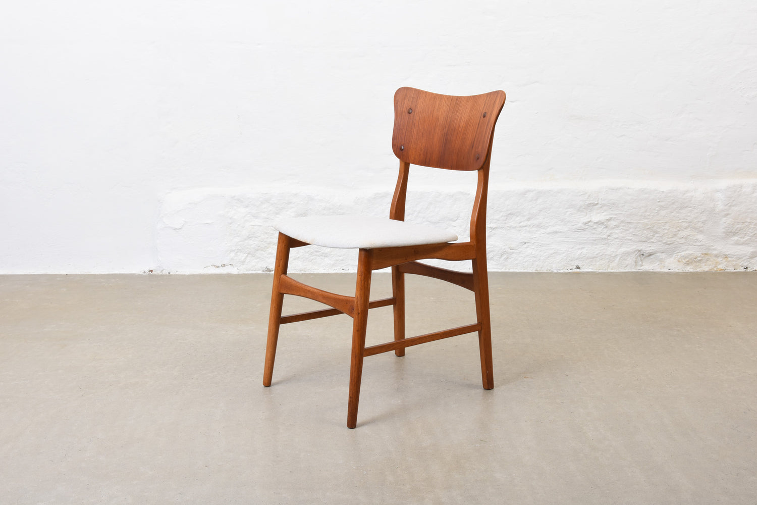 Newly reupholstered: Set of 1950s chairs in teak + oak