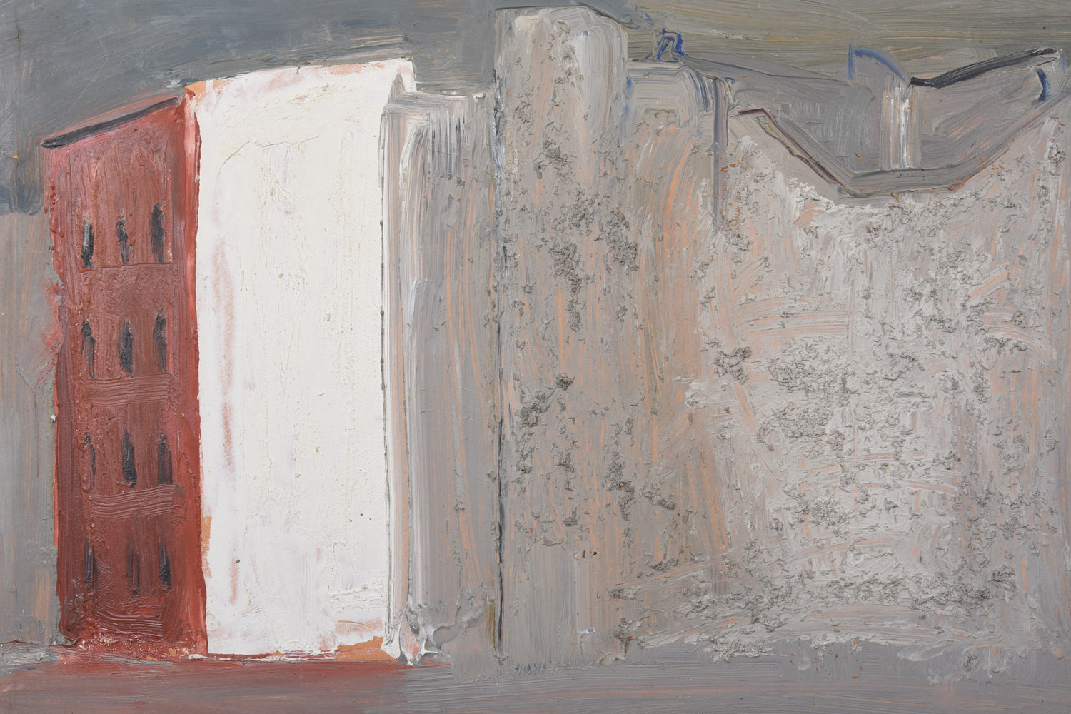 In this oil on canvas, artist Antonio Nadiani (1906-1986) has chosen to work with a limited palette, exploring how the effect of using a handful of colours can create a balanced, cohesive painting. By choosing to work with predominantly warm grey and red ochre, the artist has created unity throughout the whole canvas. These colours, combined with textured areas of paint, remind us of soft clay-like surfaces and add depth and a tactile quality to the canvas.