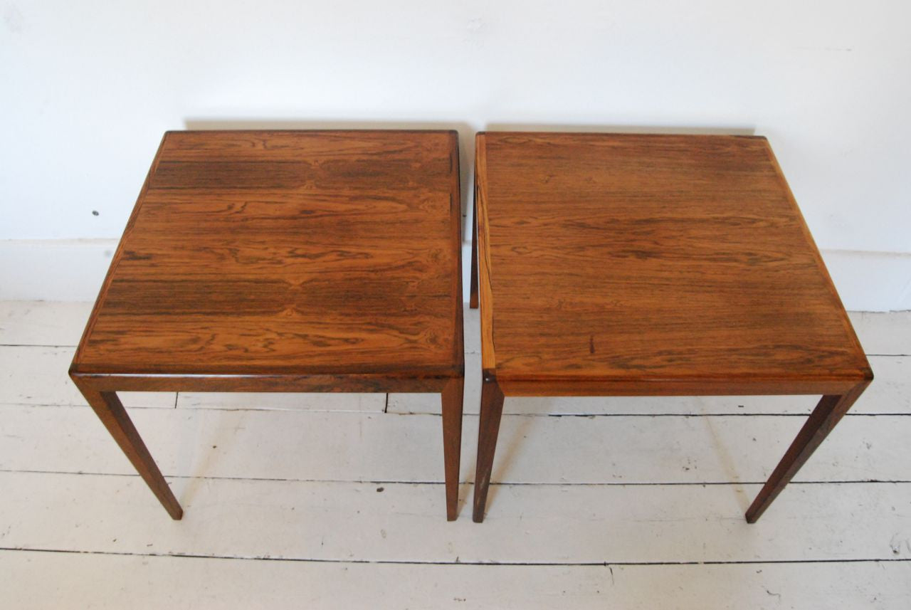 High quality pair of occasional tables in a richly grained rosewood. Would work great as bedside tables, side tables or as a coffee table. Denmark, 1960s.