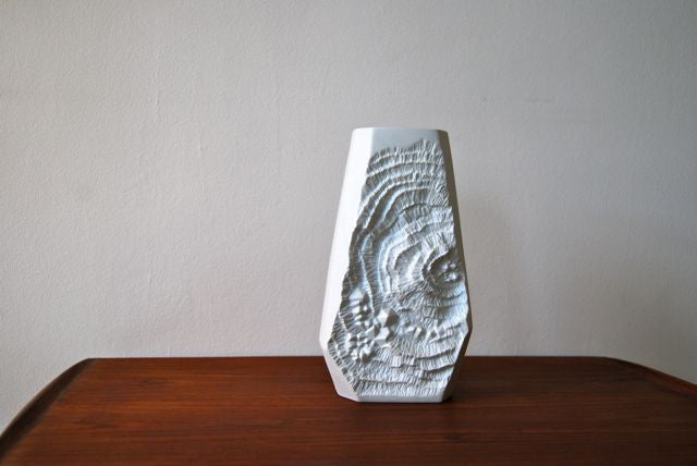 Intricately sculptured West German porcelain Fossil vase by Kaiser/Alka Kunst circa 1970s.