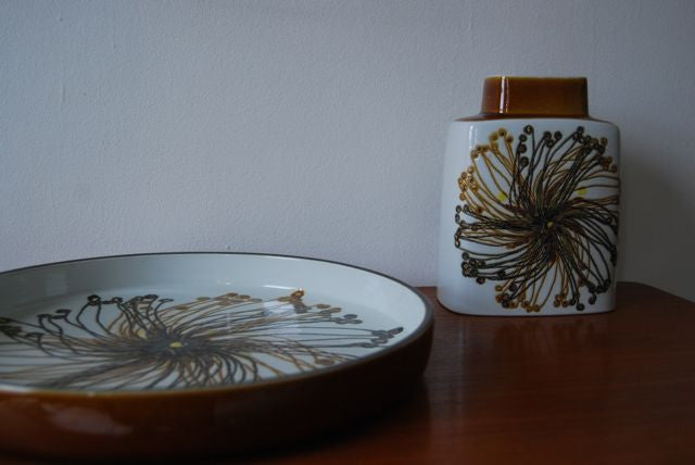 One decorative plate and one matching Baca Vase by Royal Copenhagen. Designed by Ellen Malmer.