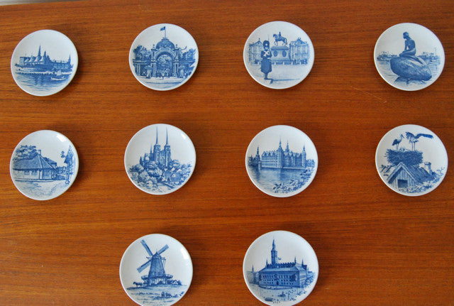 These miniature plates were given away as free gifts to SAS 1st class flyers back in the 1960s. Each plate, manufactured by Royal Copenhagen, is illustrated with a different Danish scene. A unique collection that would look great on your wall.