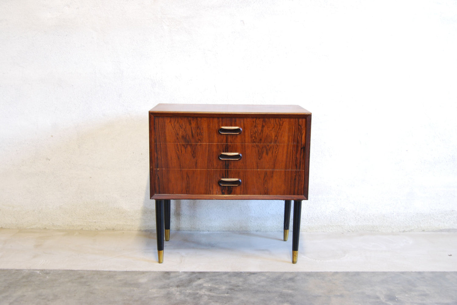 A versatile piece that could be used as a short chest of drawers in a hallway or as a bedside table. Rosewood. Denmark, 1960s.
