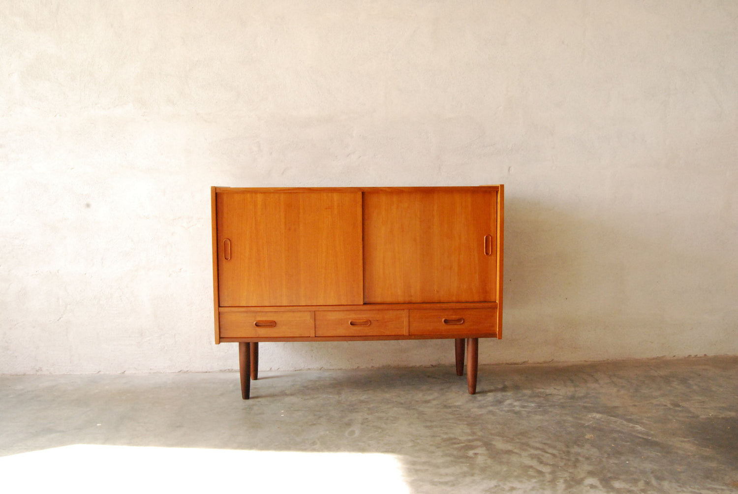 City apartment-sized short sideboard in teak. Would make a great entertainment stand. Denmark, 1960s.