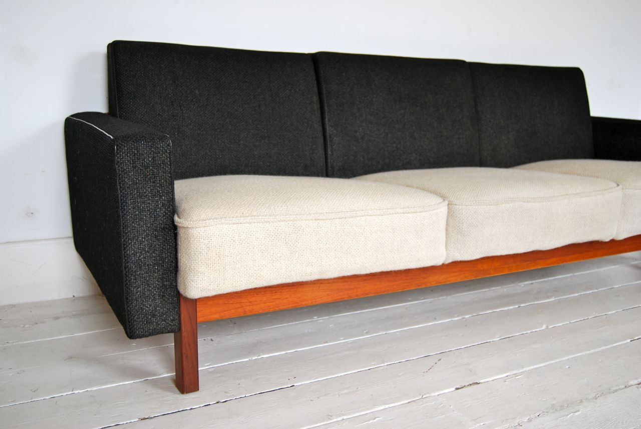 Stunning three seat sofa in contrast charcoal and creme wool. Produced by ASKO of Finland circa late 1960s.