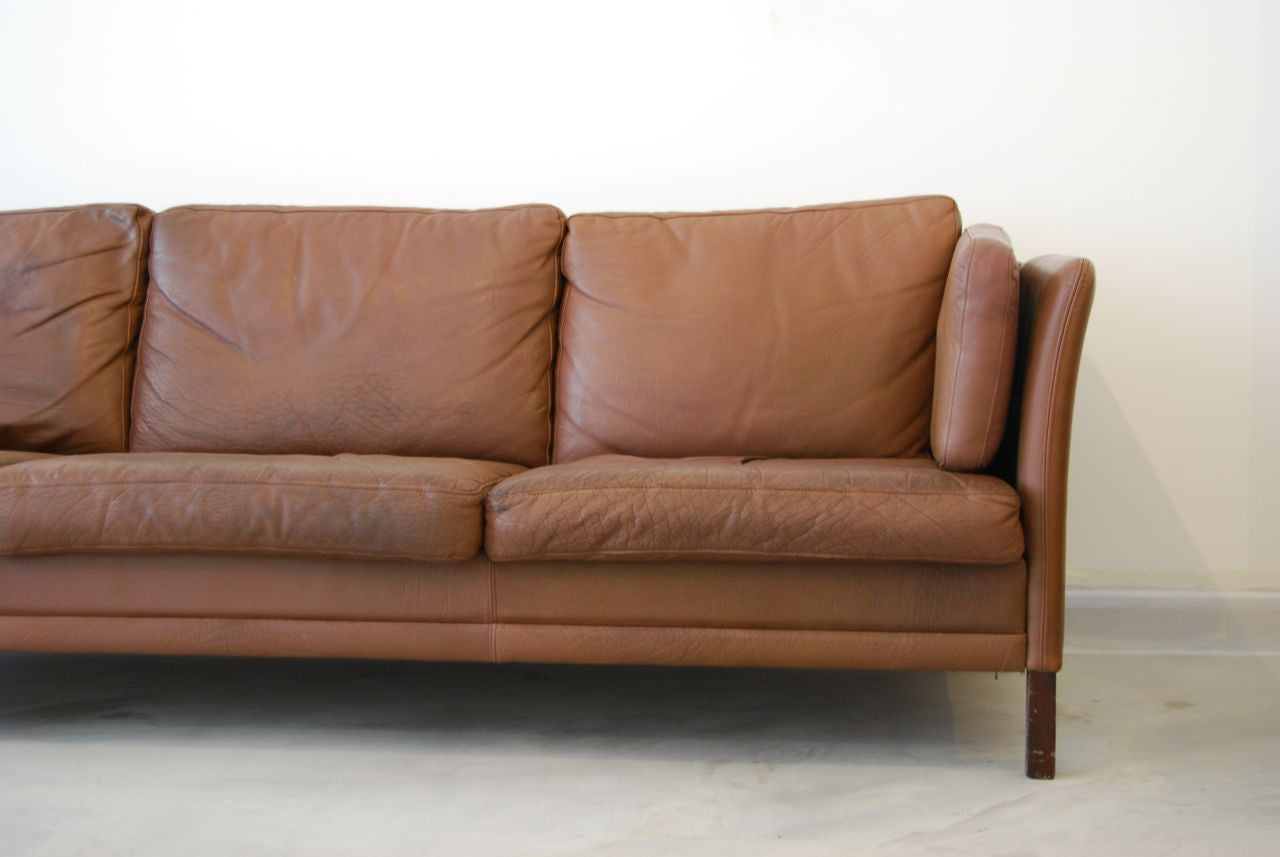 Three seat sofa in beautifully aged leather. Features down filled cushions.