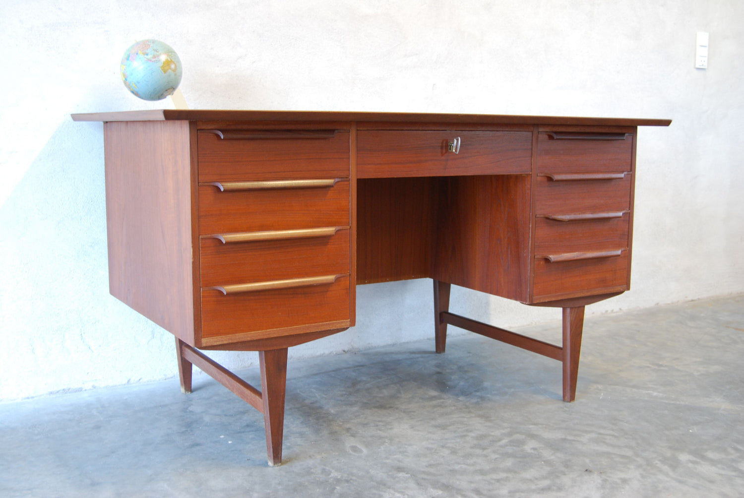 Twin pedestal desk in teak
