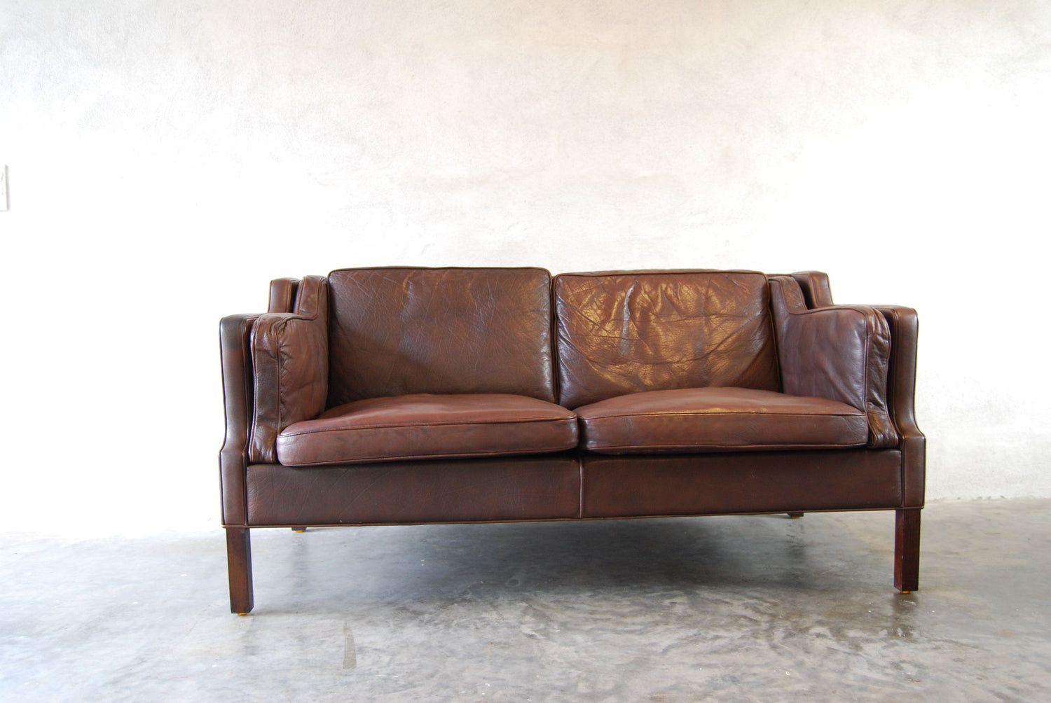 Leather two seater in style of Bíëí_rge Mogensen's classic design. Features down-filled cushions and squared legs.