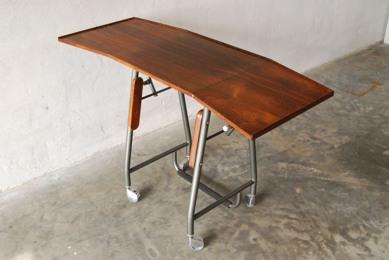 Very original typists' desk in rosewood. Features two drop leafs. The perfect stand for your laptop. Denmark, 1970s.