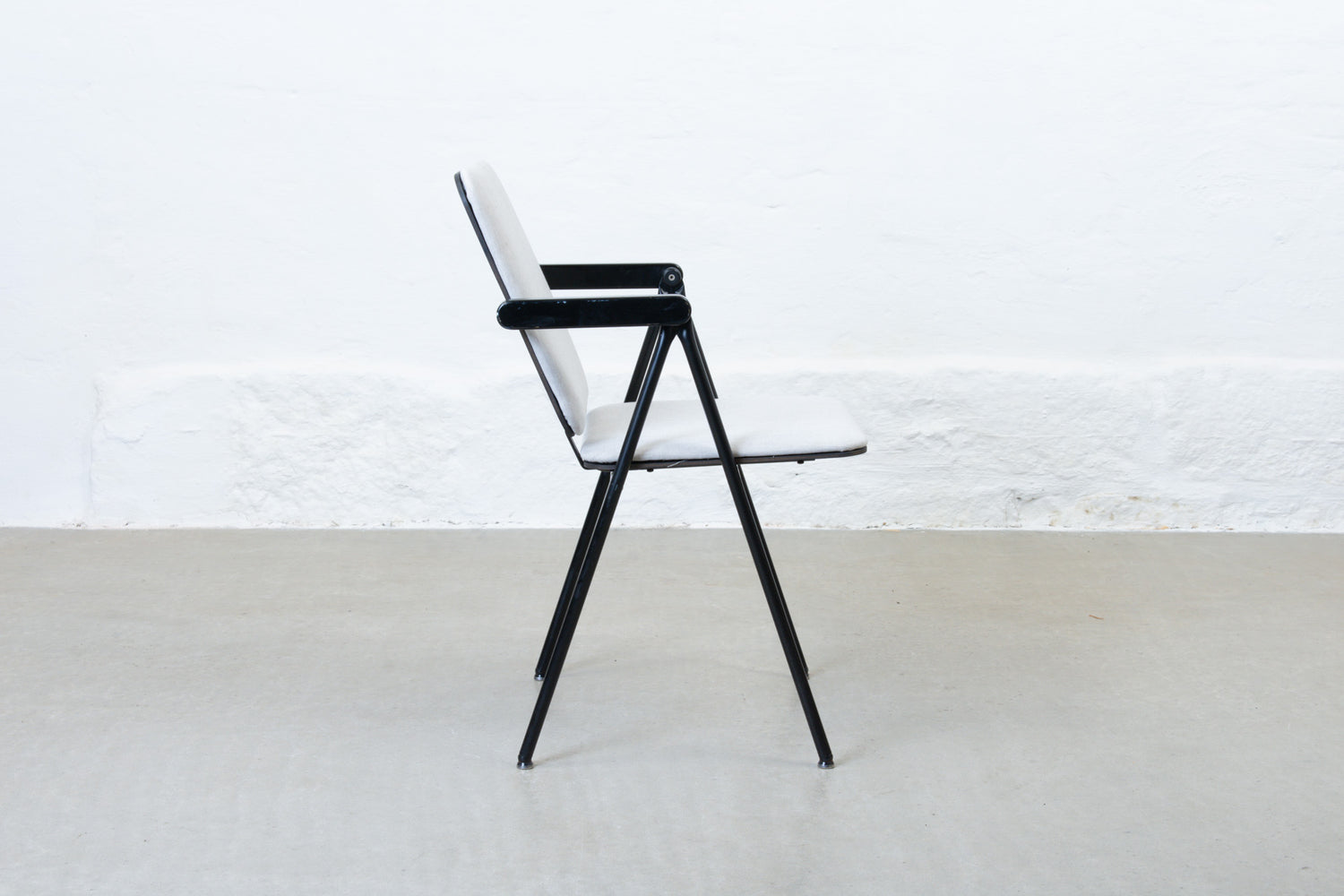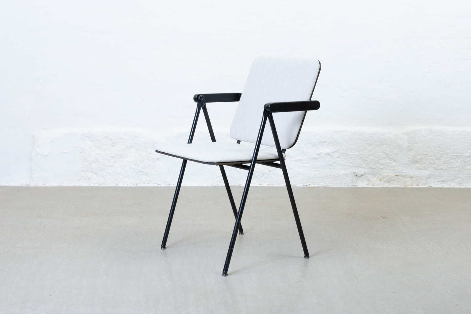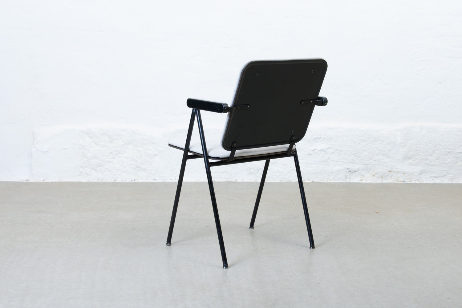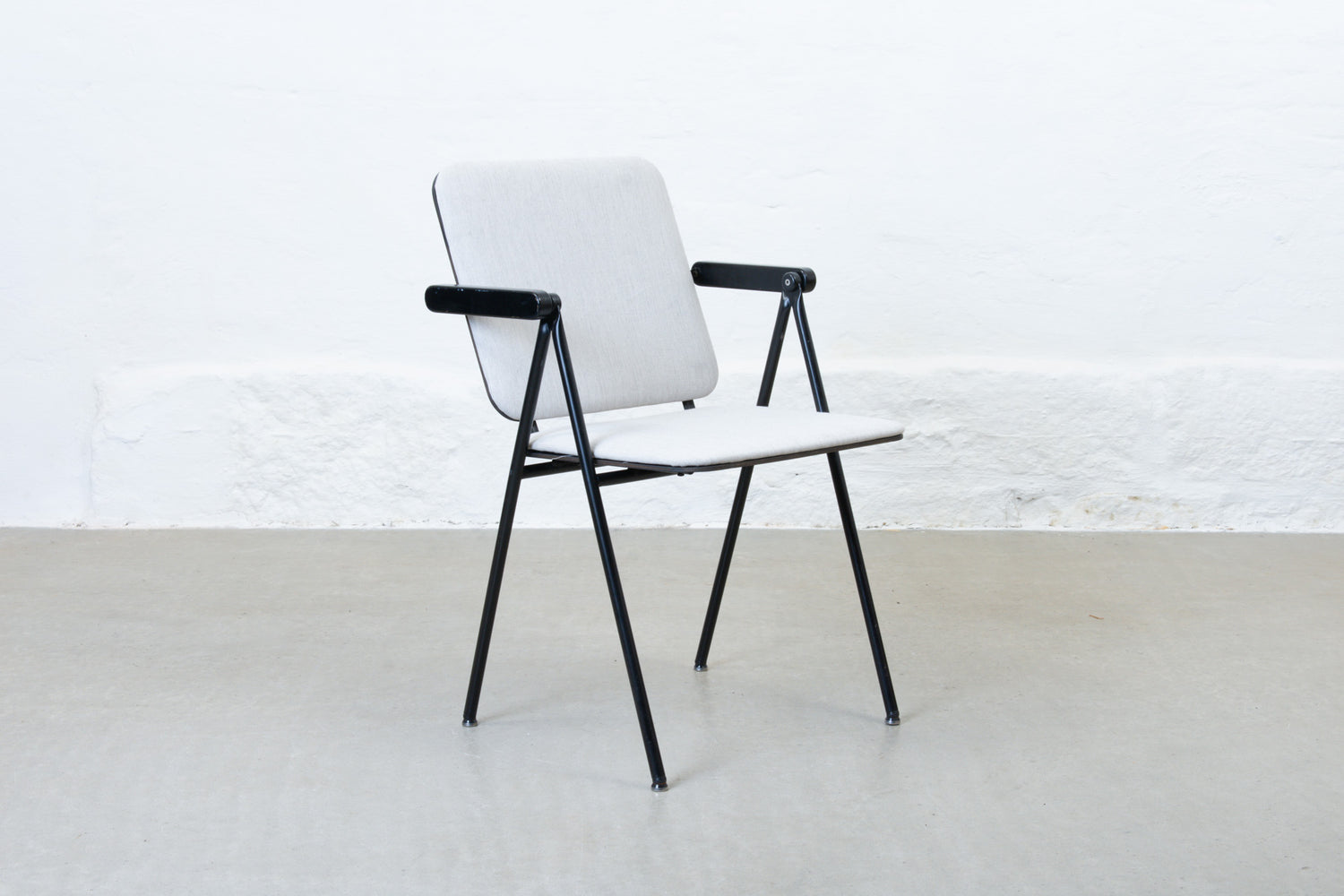 Armchair with a metal frame and padded ply seat/backrest newly reupholstered in a cotton/wool blend by Kvadrat.