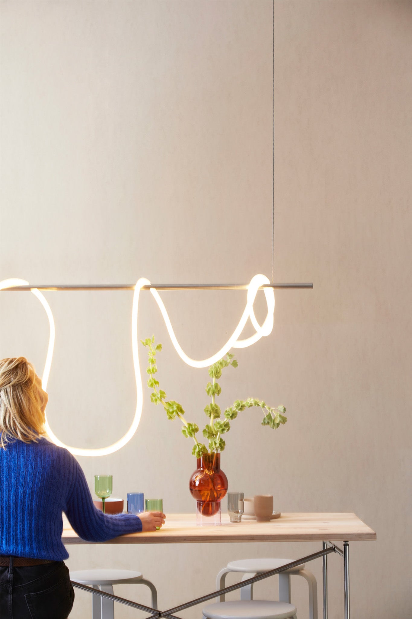 The Flex Tube is an innovative and modern LED light source encased in silicone that can be shaped to create artistic expressions and patterns. With a soft and adjustable design, you can bend the lamp as desired to create your own original aesthetic and unique centrepiece.