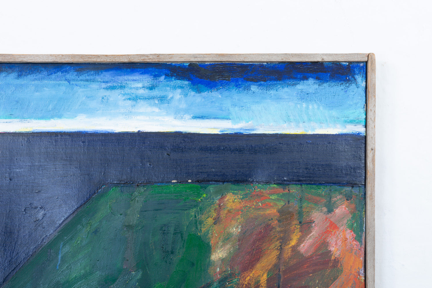 The paint has been applied in gestural marks and we can see in areas that the artist has chosen to mix the oils directly on the canvas, allowing colours to run into each other. This creates a sense of spontaneity and expressive energy, as though the artist was building their vision and their exploration of paint in the moment.